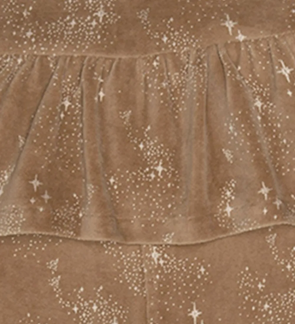 Yndig That’s Mine buksedragt i brun velour med et flot stjerne-print i hvid.
