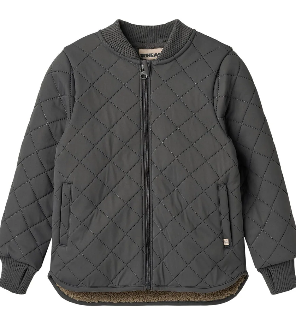 Pæn Wheat termojakke i ensfarvet, mørk koksgrå med en quiltet struktur.