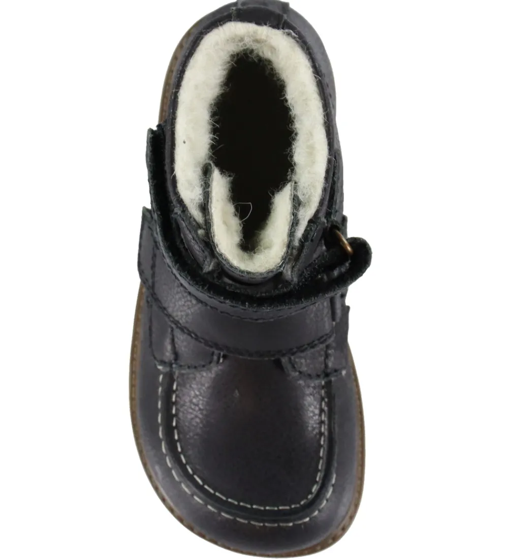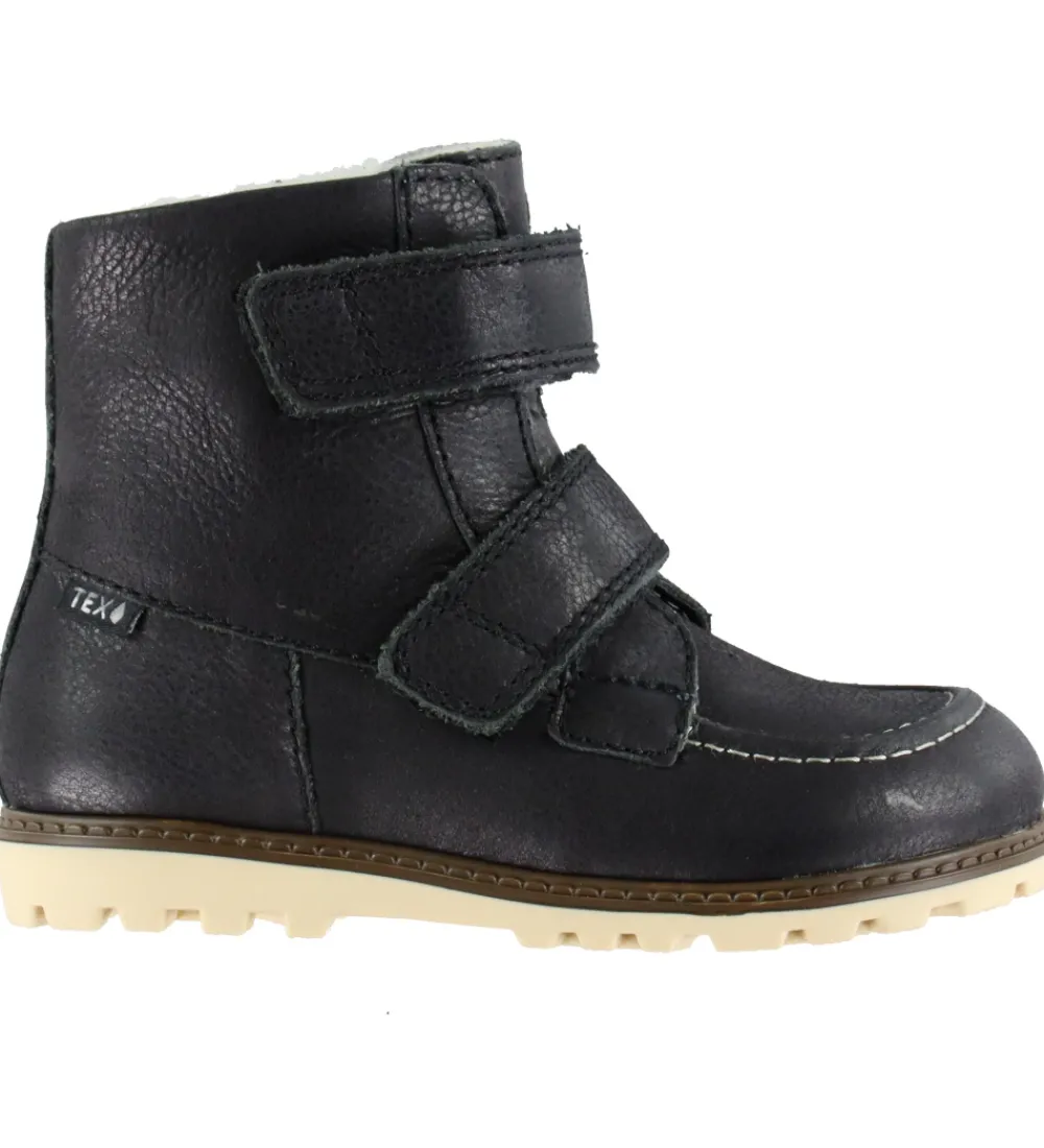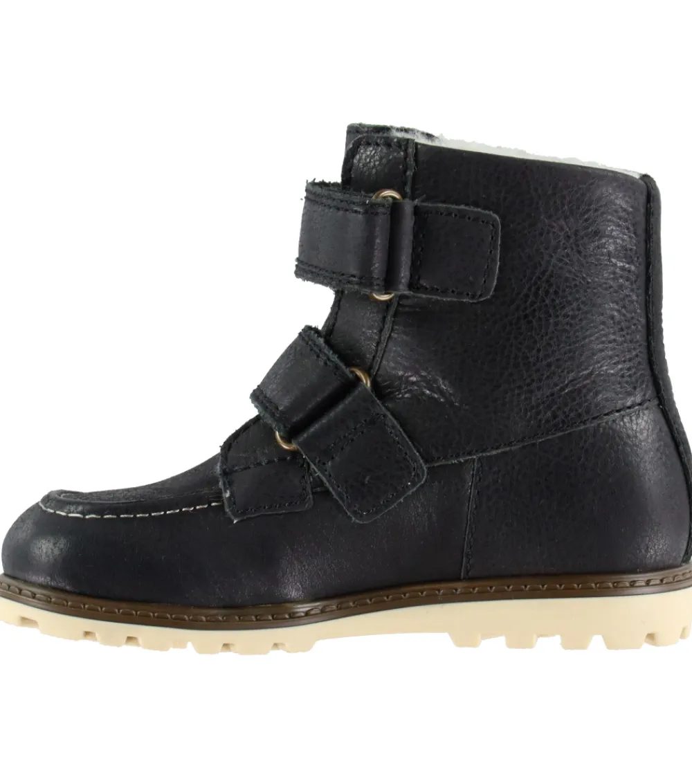Bundgaard vinterstøvlerne er en mellemhøj model, der går op over anklerne. De lukkes med praktiske velcroremme over vristen, for let og hurtig tilpasning. Vinterstøvlerne har en forstærket tå- og hælkappe. Indvendigt er de forede med imiteret uldfor, og i bunden er der en udtagelig indersål.
