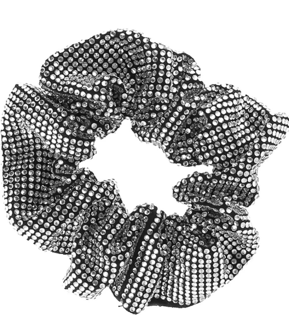 Pæn By Stær scrunchie i sort med glimmersten i sølv over det hele.