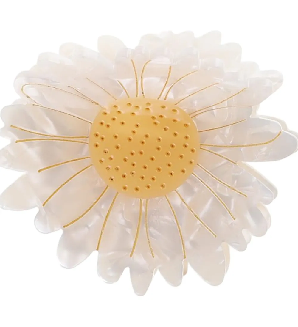 Charmerende hårklemme fra By Stær formet som en blomst i hvid og gul med fine detaljer. By Stær hårklemmen tilføjer et elegant touch til ethvert look.