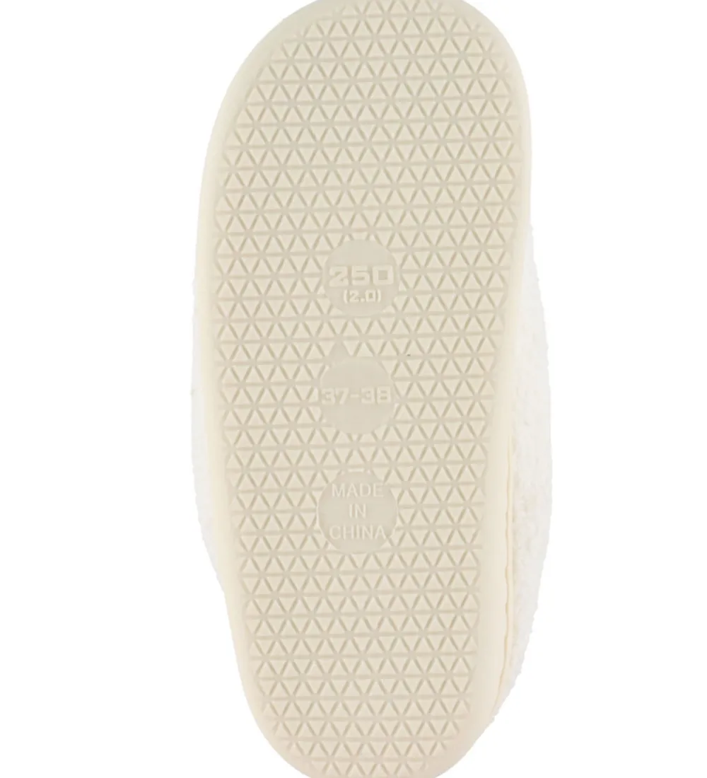 By Stær hjemmeskoene er en slippers-model, som er åben ved hælen med en lille kant, så de bedre holdes på plads på fødderne. Hjemmeskoene er forede med beige teddyfleece, og de har en fleksibel ydersål af et letvægtigt materiale i hvid.
