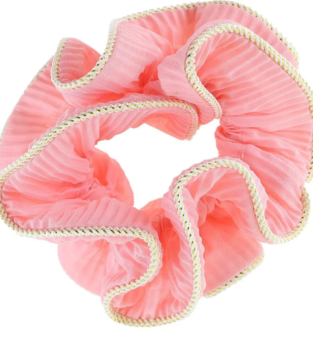Yndig By Stær scrunchie i rosa med flot struktur og en dekorativ glimmerkant. Den har en syning på midten, som giver et fint flæse-look.