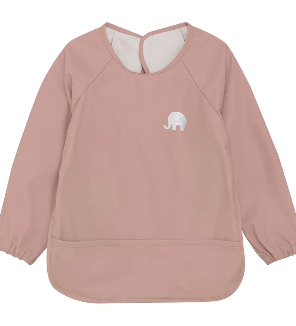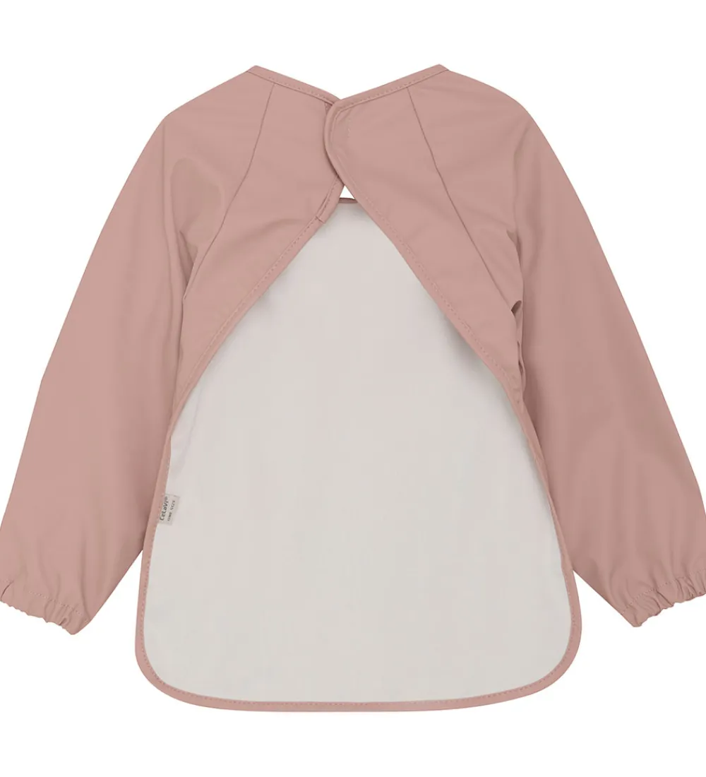 Smart CeLaVi forklæde i støvet rosa med et reflekslogo i venstre side. Forklædet har lange ærmer med elastik ved håndleddene. Det lukkes i nakken med velcro, og nederst er der en praktisk opsamlingslomme. Forklædet har en PU-coating, som gør det vandtæt og let at tørre af.