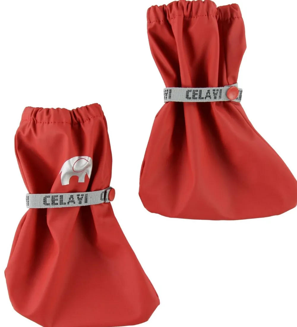 Fine CeLaVi overtrækssko i en flot, rød nuance PU med refleksprint af CeLaVis velkendte elefant på siden af hver sko.