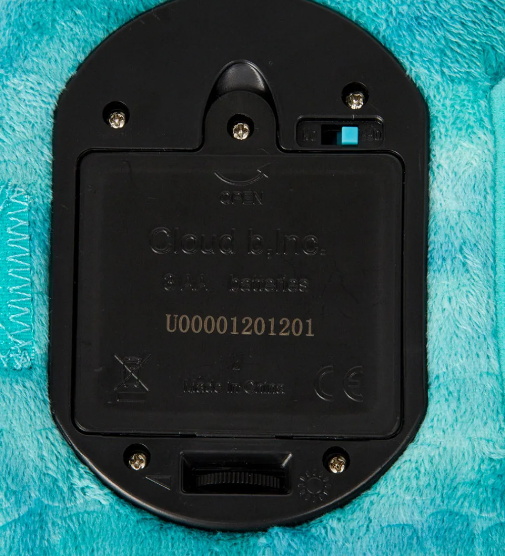 Cloud-B natlampen kombinerer forskellige effekter, for at sikrer barnet en god nats søvn. Effekterne styres med knapper der sidder bagerst på skjoldet. Trykker man på første knap tændes lampen, og skjoldet afgiver et turkis lys med undervandseffekt og bølgende bevægelser. Anden knap tænder lyden. Der kan vælges mellem to beroligende lyde; Tranguil Melody og Ocean Waves, og lydstyrken kan justeres med de to små knapper under. Den sidste knap giver mulighed for at slukke de bølgende bevægelser i lyset.