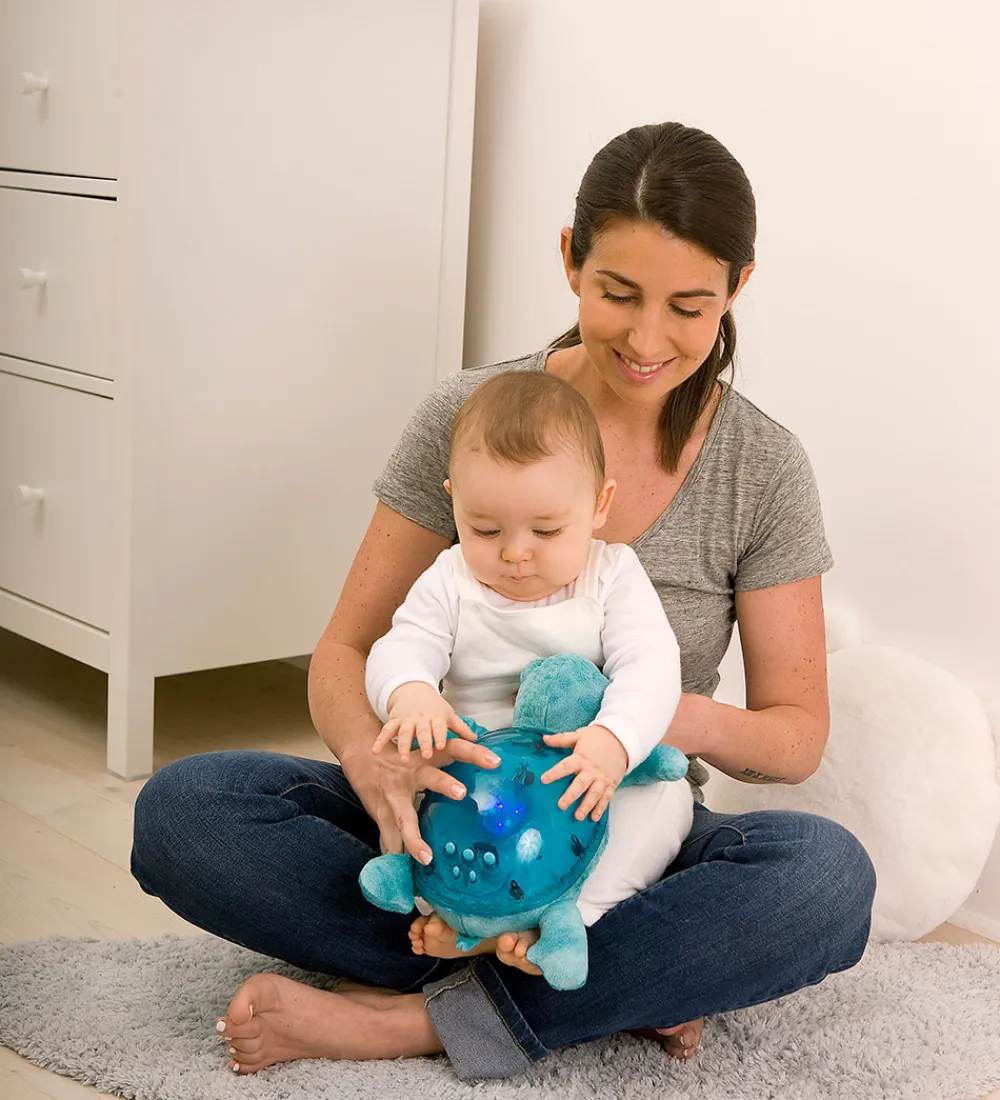 Cloud-B natlampen har forskellige afslappende effekter, som giver barnet en god afslutning på dagen. Effekterne styres med knapper bagerst på skjoldet. Natlampen kan projekterer en undervandslyseffekt og skjoldet gløder i en afslappende turkis nuance. Natlampen kan spille fire lyde, hvoraf to er rolige melodier og to er havlyde.