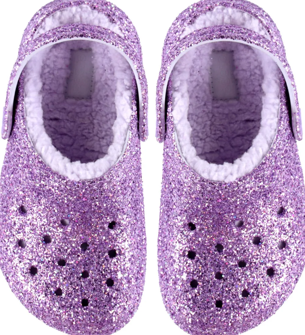 Flotte Crocs sandaler i ensfarvet glimmerlilla.