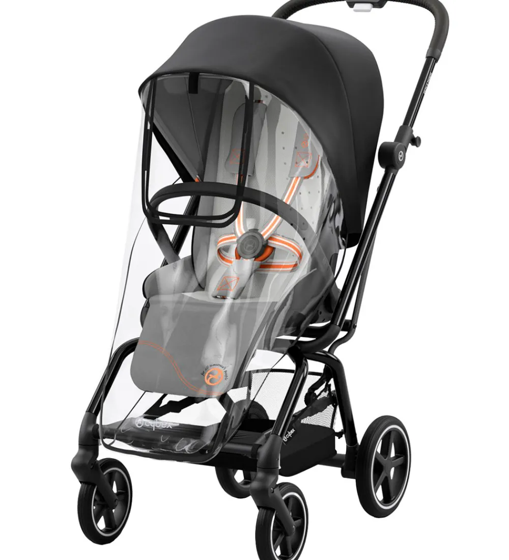 Praktisk Cybex regnslag i sort og med en front af gennemsigtigt PU.
