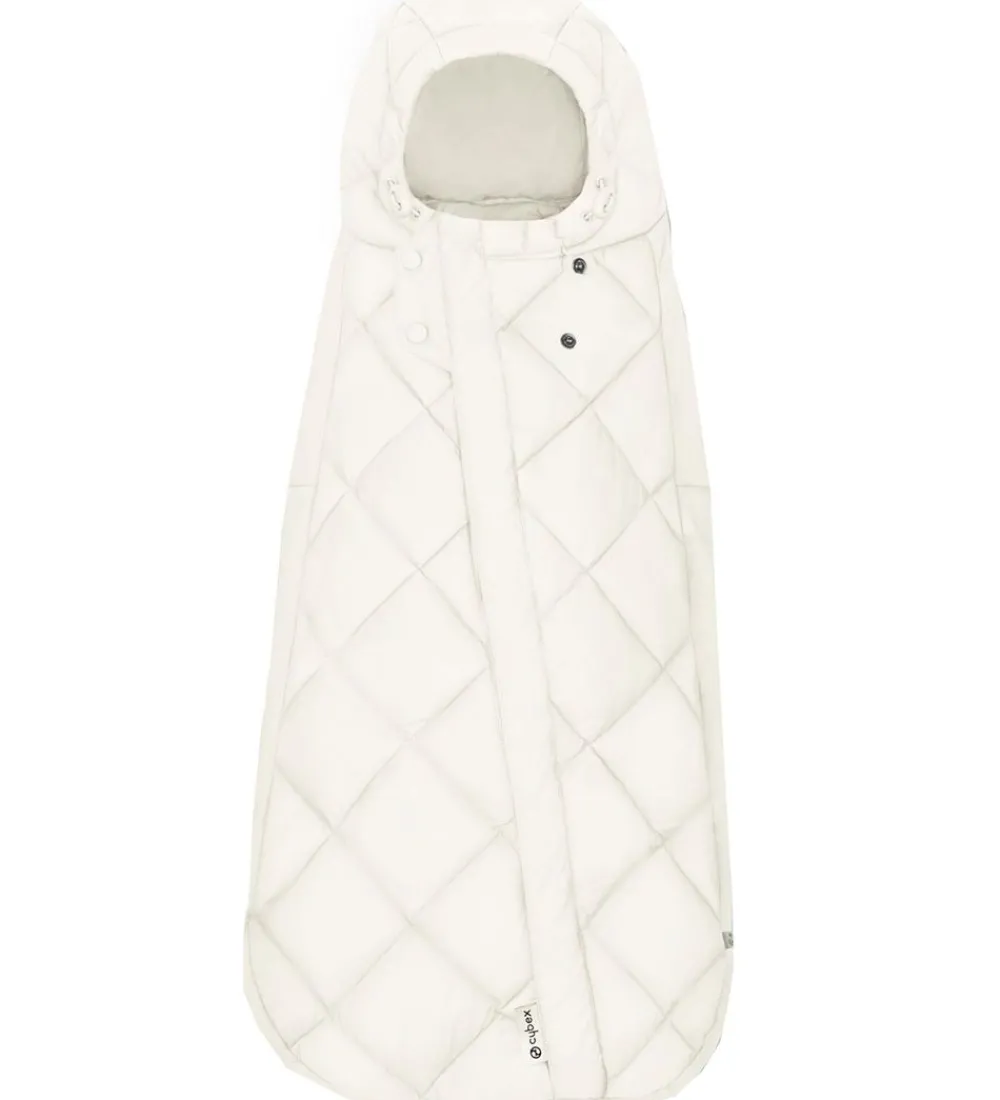 Cybex køreposen holder barnet lunt i autostolen. Køreposen åbnes fortil med en lynlås med dobbelt vindstolpe, og i toppen lukkes den til med to trykknapper. De to trykknapper kan også holde køreposen lidt åben i toppen. Hætten kan strammes ind med en elastiksnøre i begge sider.