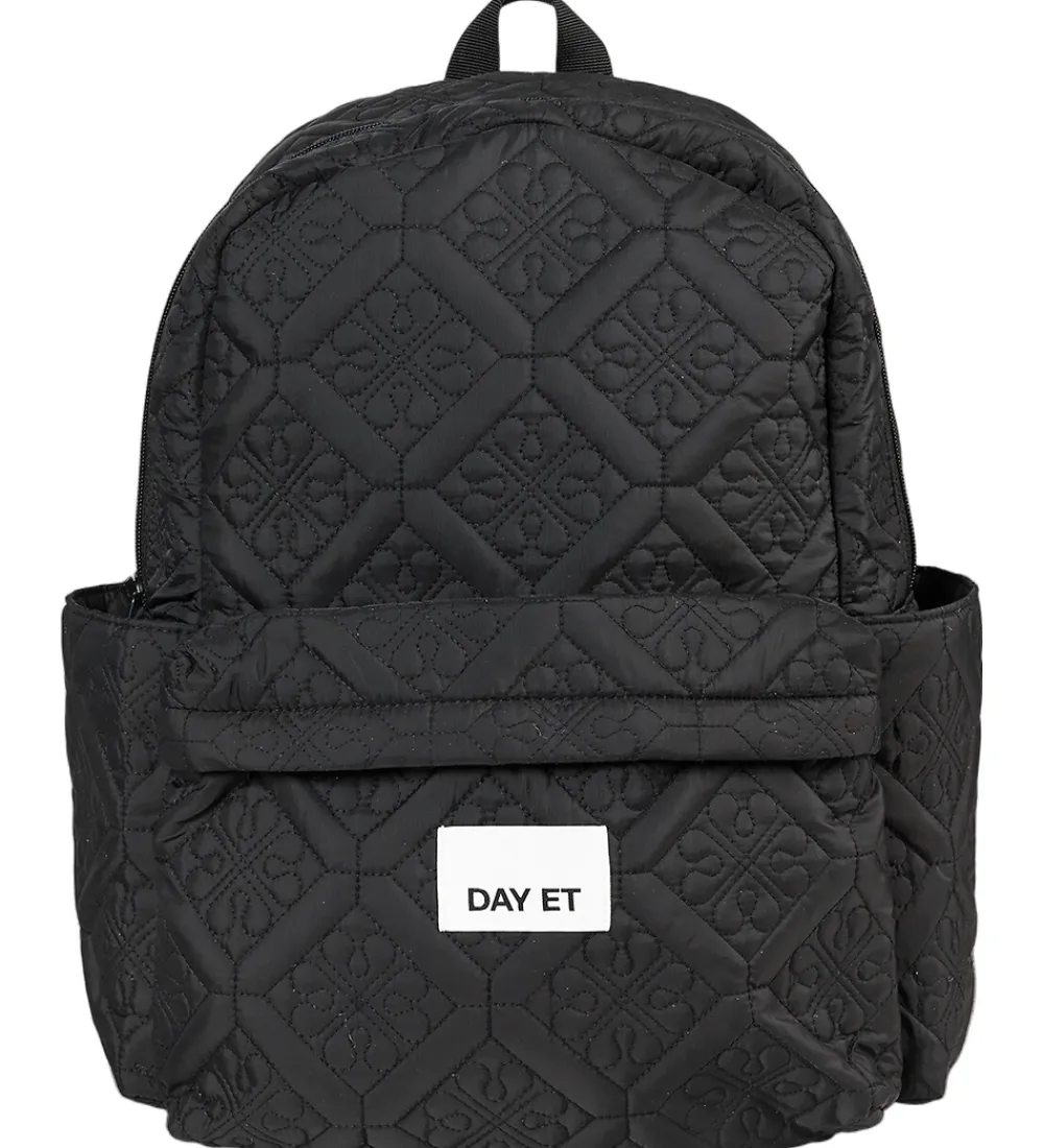Smart DAY ET rygsæk i sort med quiltet mønster og hvid logopatch på fronten.