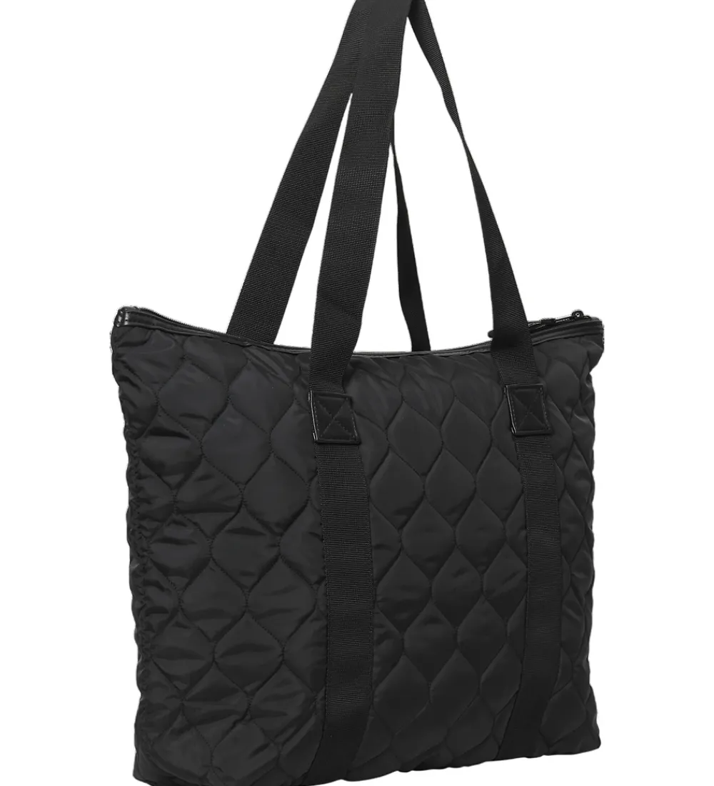 Flot DAY ET shopper i sort med en quiltet struktur og en hvid logoapplikation på fronten.