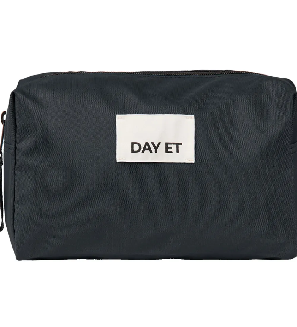 Smart DAY ET toilettaske i sort med et hvidt stofmærke fortil med teksten “DAY ET”.