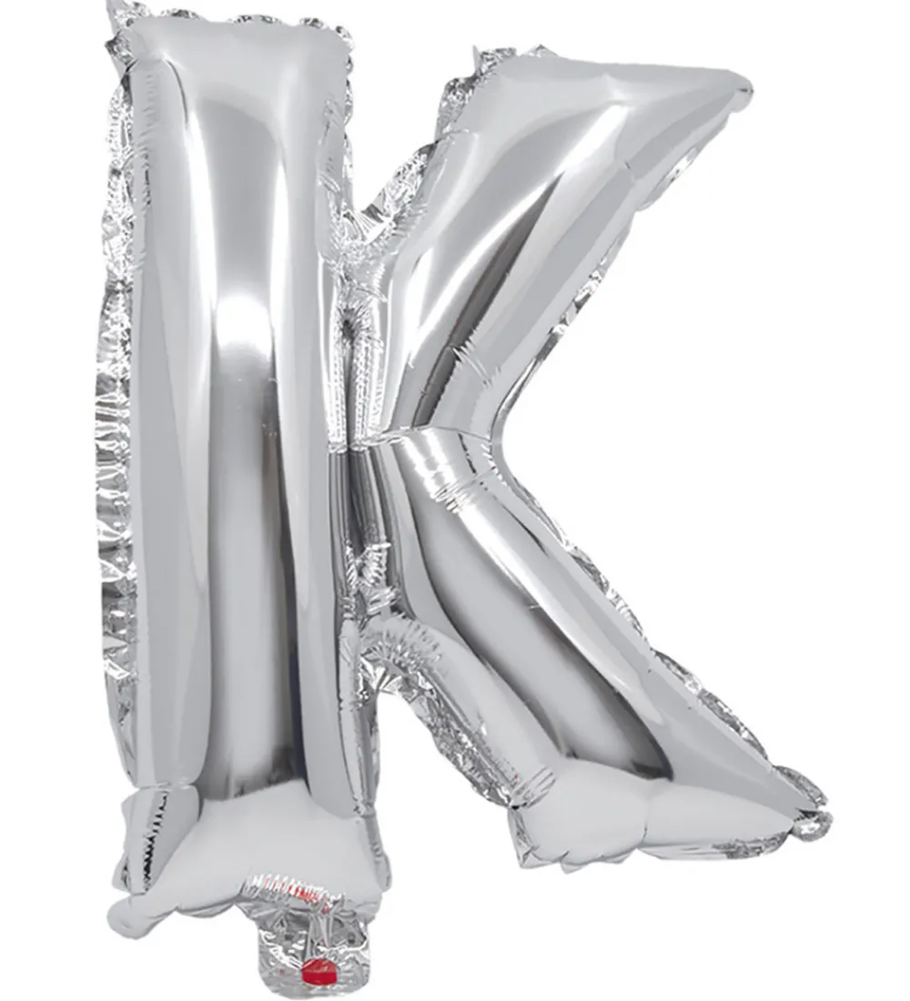 Flot Decorata Party foileballon i sølv med form som bogstavet “K”.