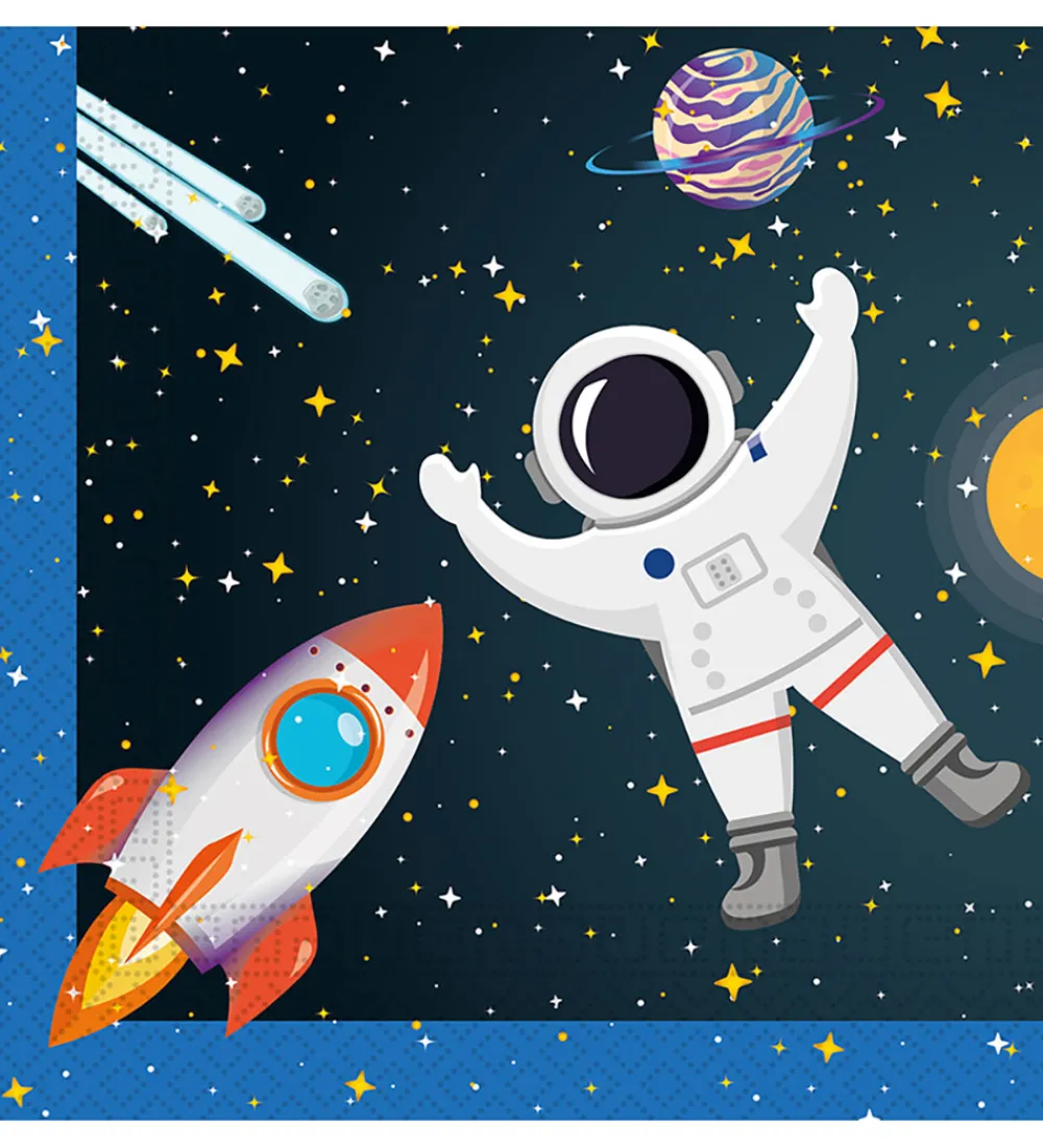 Flotte Decorata Party servietter i mørkeblå med et spændende astronaut og raket tema. Decorata Party servietterne er ideelle til fester og børnefødelsdage, hvor opdækningen skal være flot og festlig, men samtidig nem og hurtig at rydde op.
