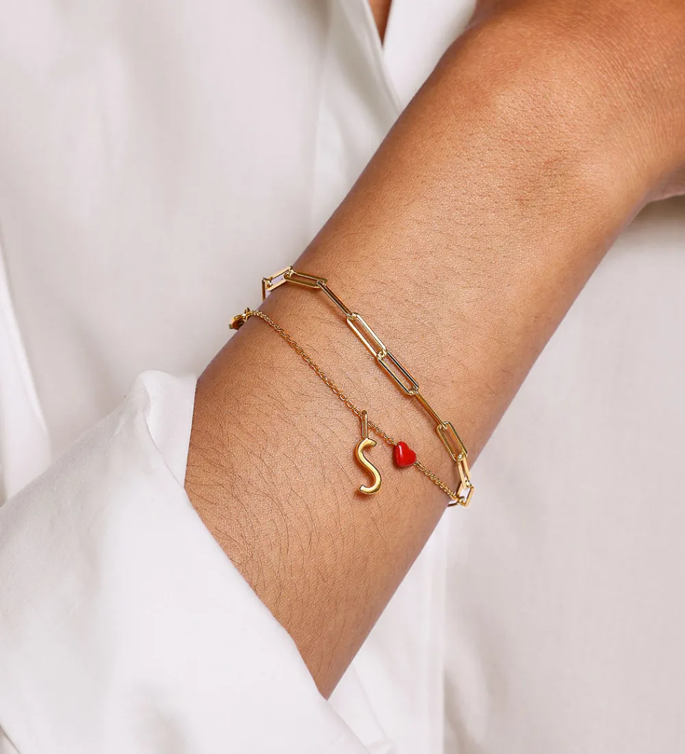 Fint Design Letters armbånd i 18 karat forgyldt, genanvendt sterlingsølv.