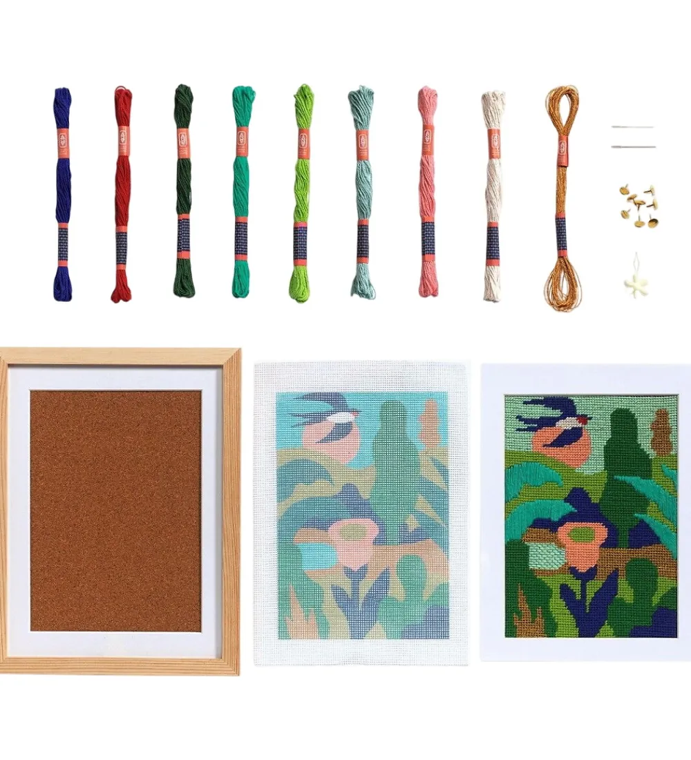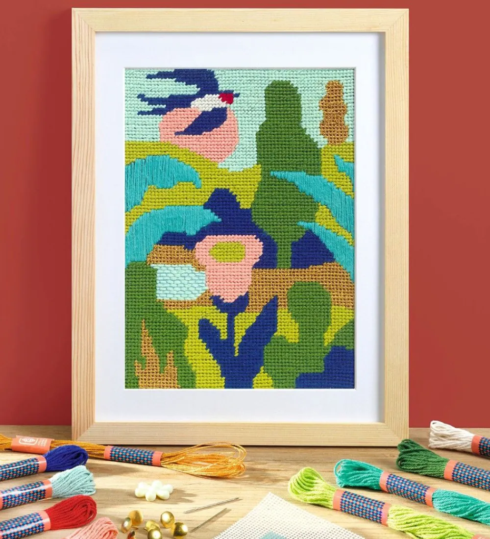 Flot Djeco kreasæt der giver mulighed for at lave et farverigt broderimønster med ramme. Djecosættet indeholder forskellige garnfarver og nåle, hvilket giver kreative muligheder.