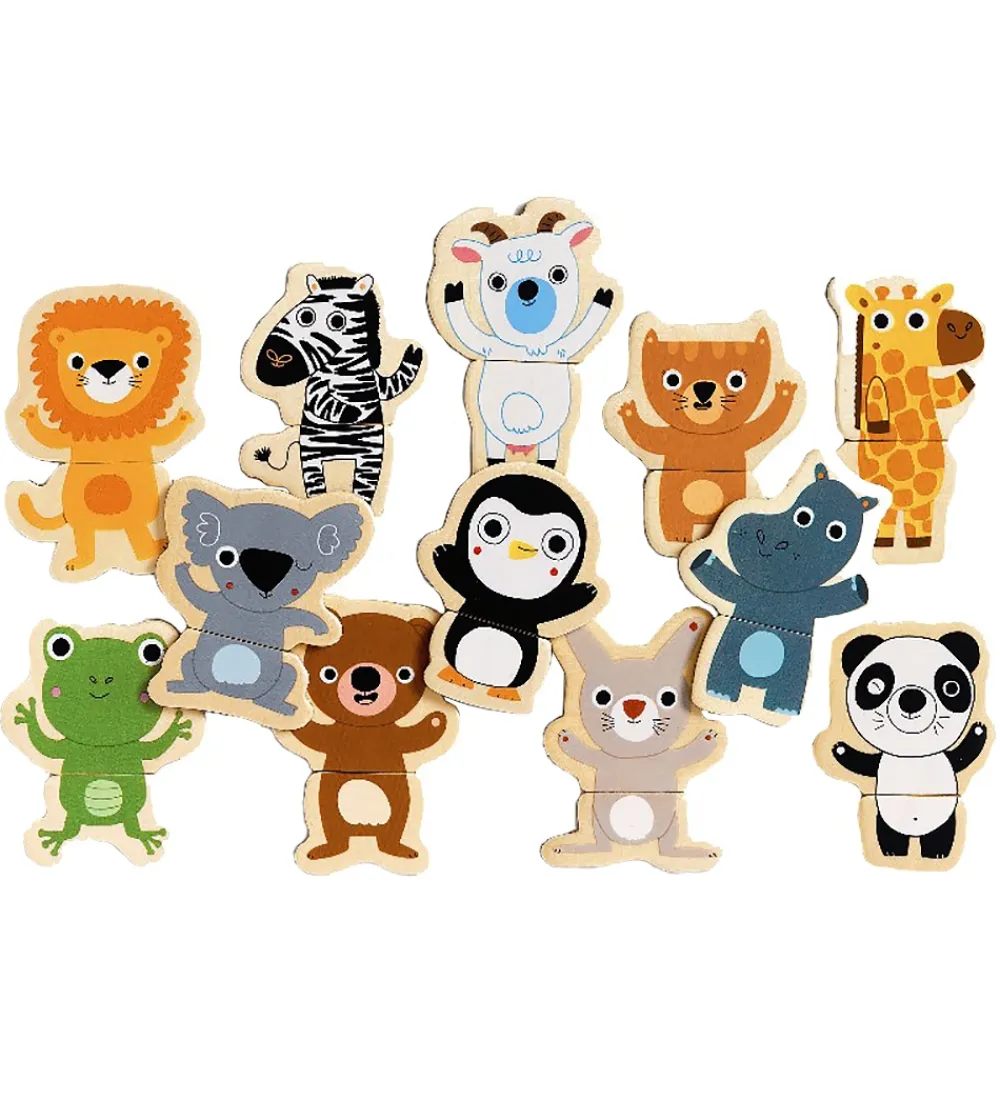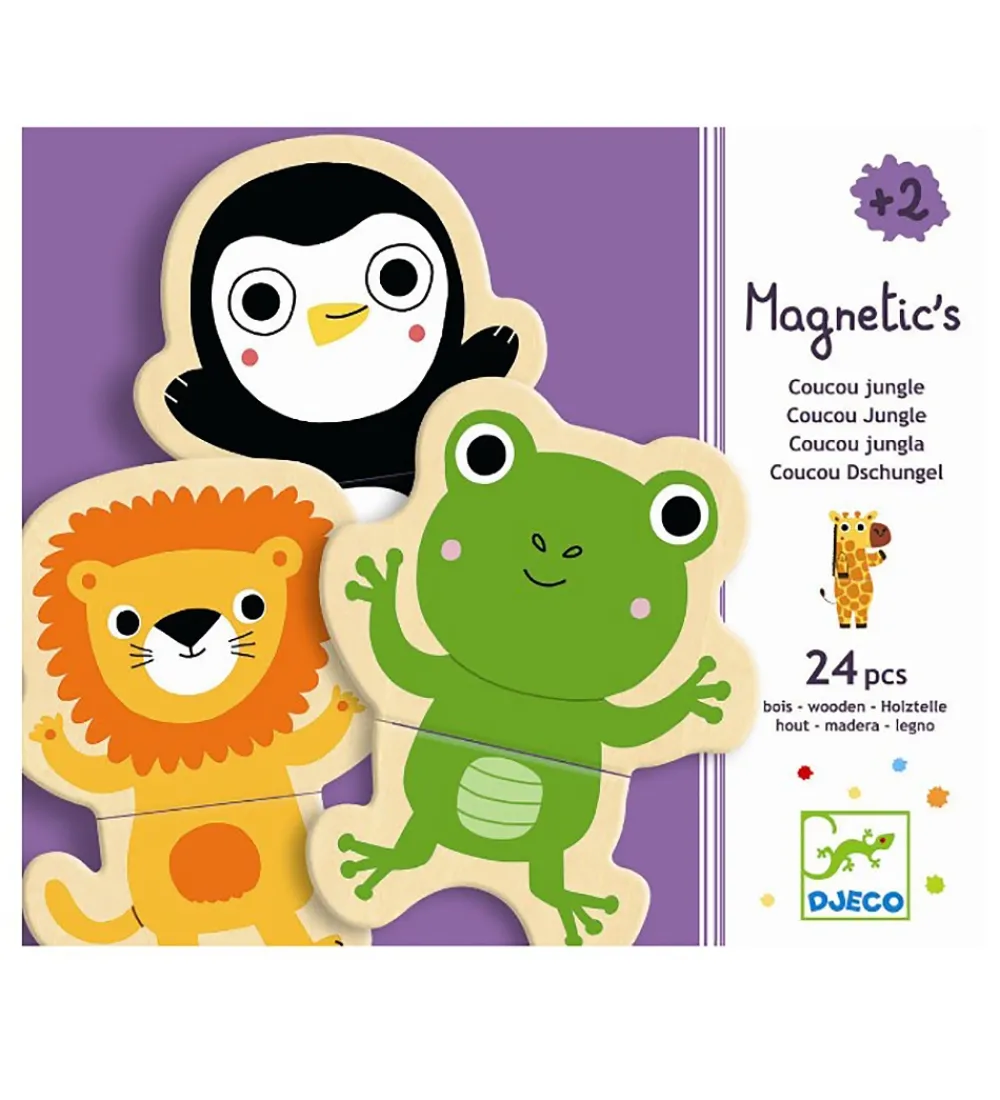 Djeco magneterne består af 12 figurer, som hver består af 2 magneter. Så kan man finde de magneter, der passer sammen, eller man kan bytte rundt på hoved og ben, så man skaber skøre og sjove fantasidyr.