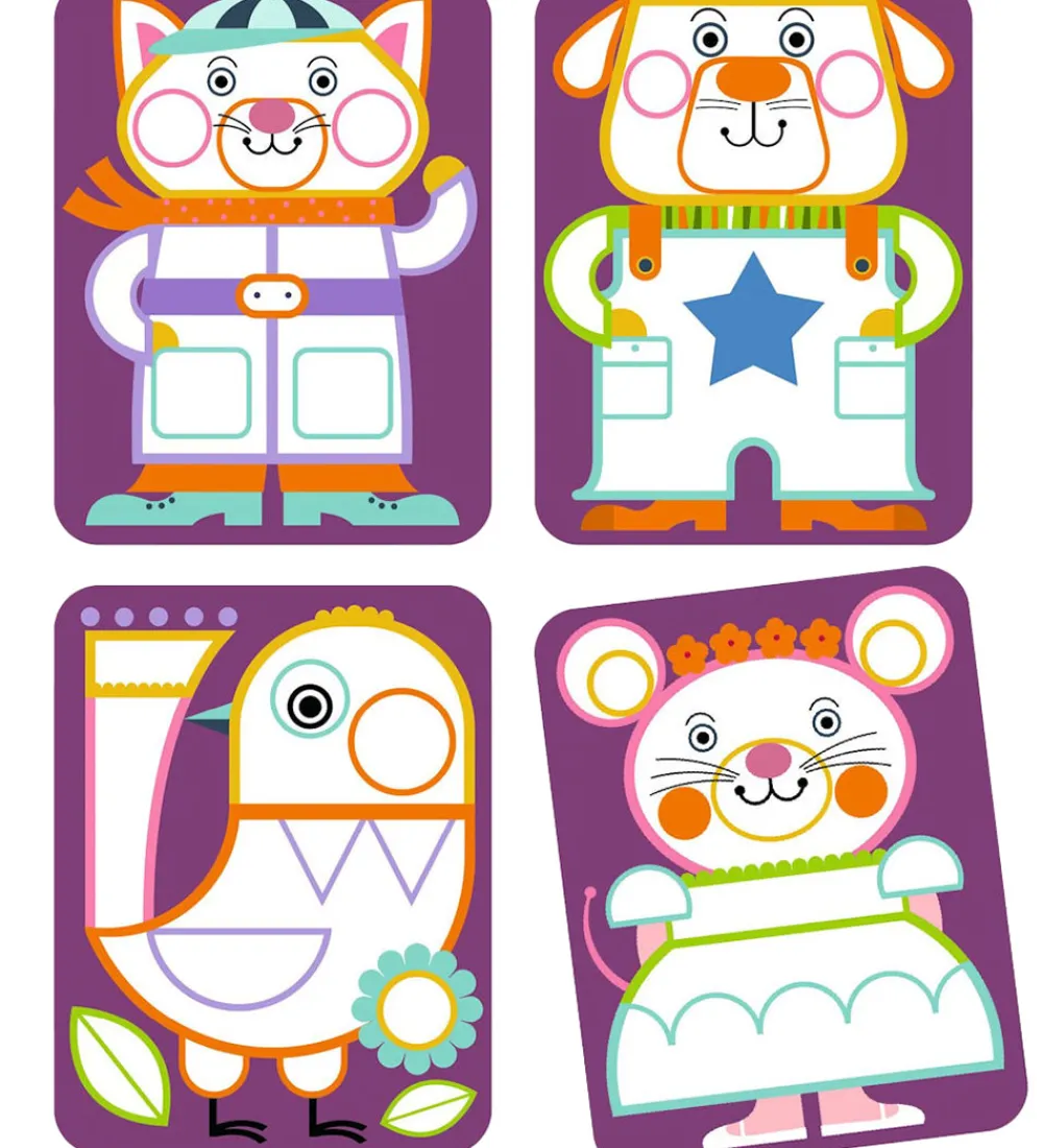 Farvesættet er nemt og sjovt at bruge. Dyp et par dråber vand i vandmalingen og mal tegningerne i flotte farver.