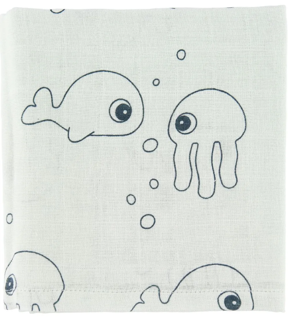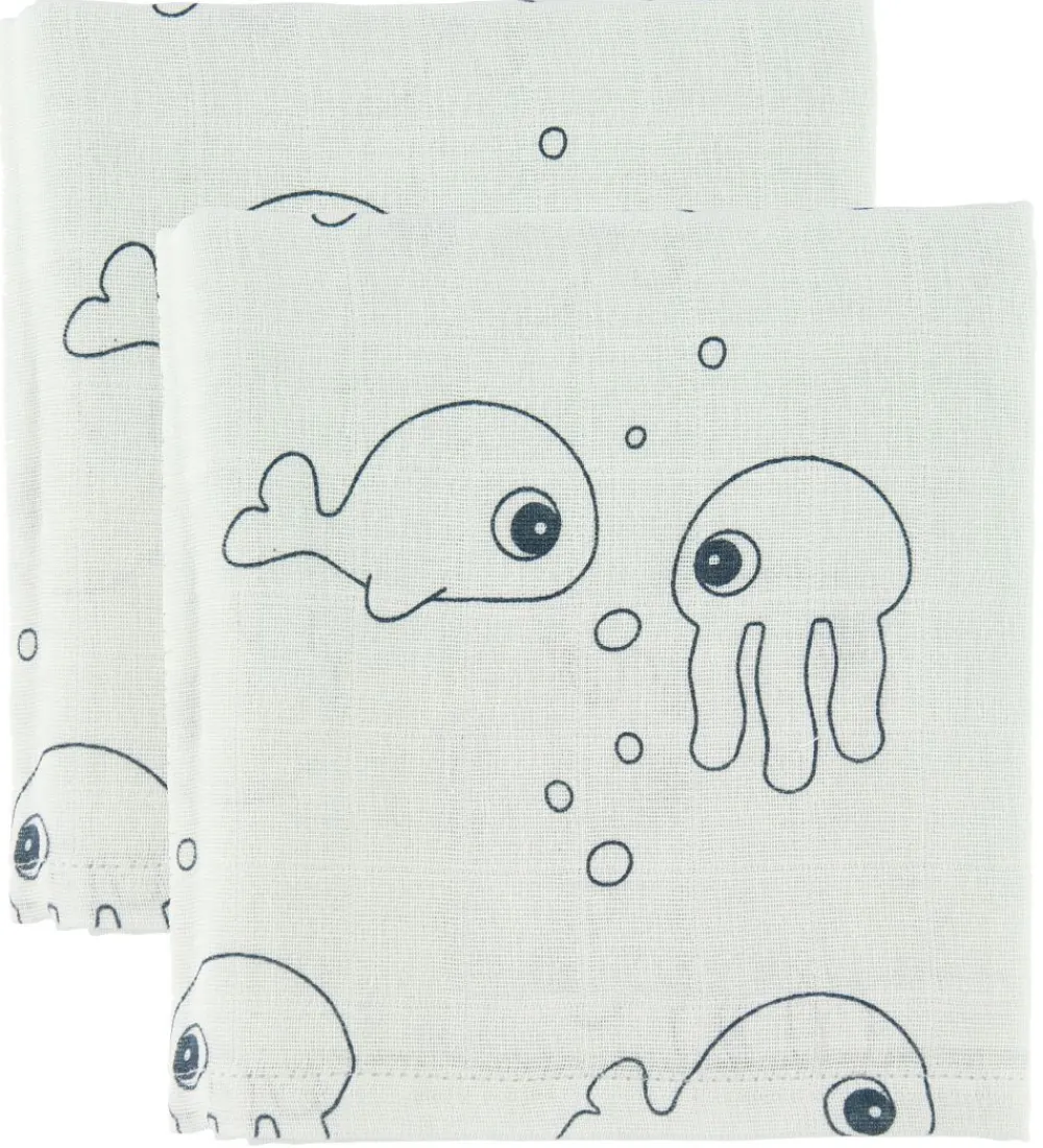 Fine Done By Deer babysvøb solgt i 2 pak i ensfarvet lyseblå med et allover-print af blæksprutter og hvaler.