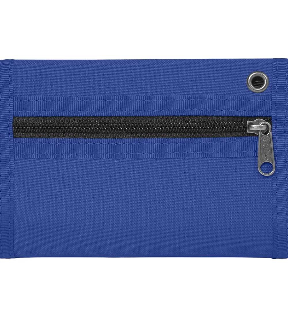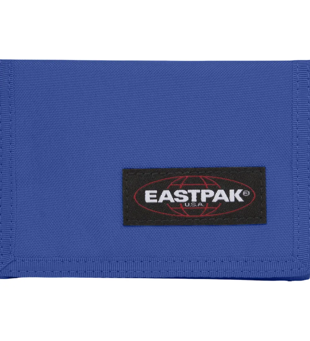Fin Eastpak pung i blå med en logopatch fortil i brandets originale farver; rød, hvid og sort.