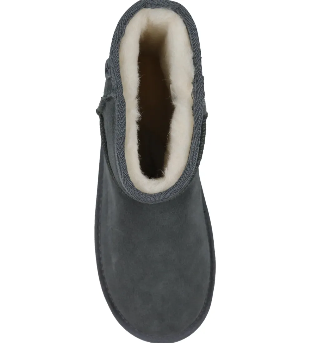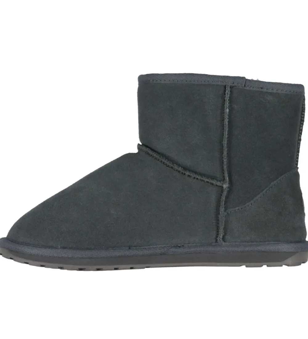 Flotte EMU Australia bamsestøvler i ensfarvet gråt ruskind med dekorative syninger.