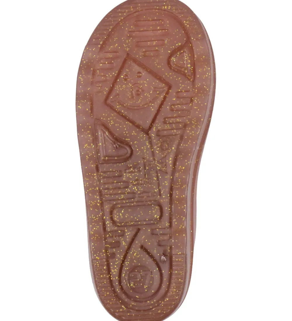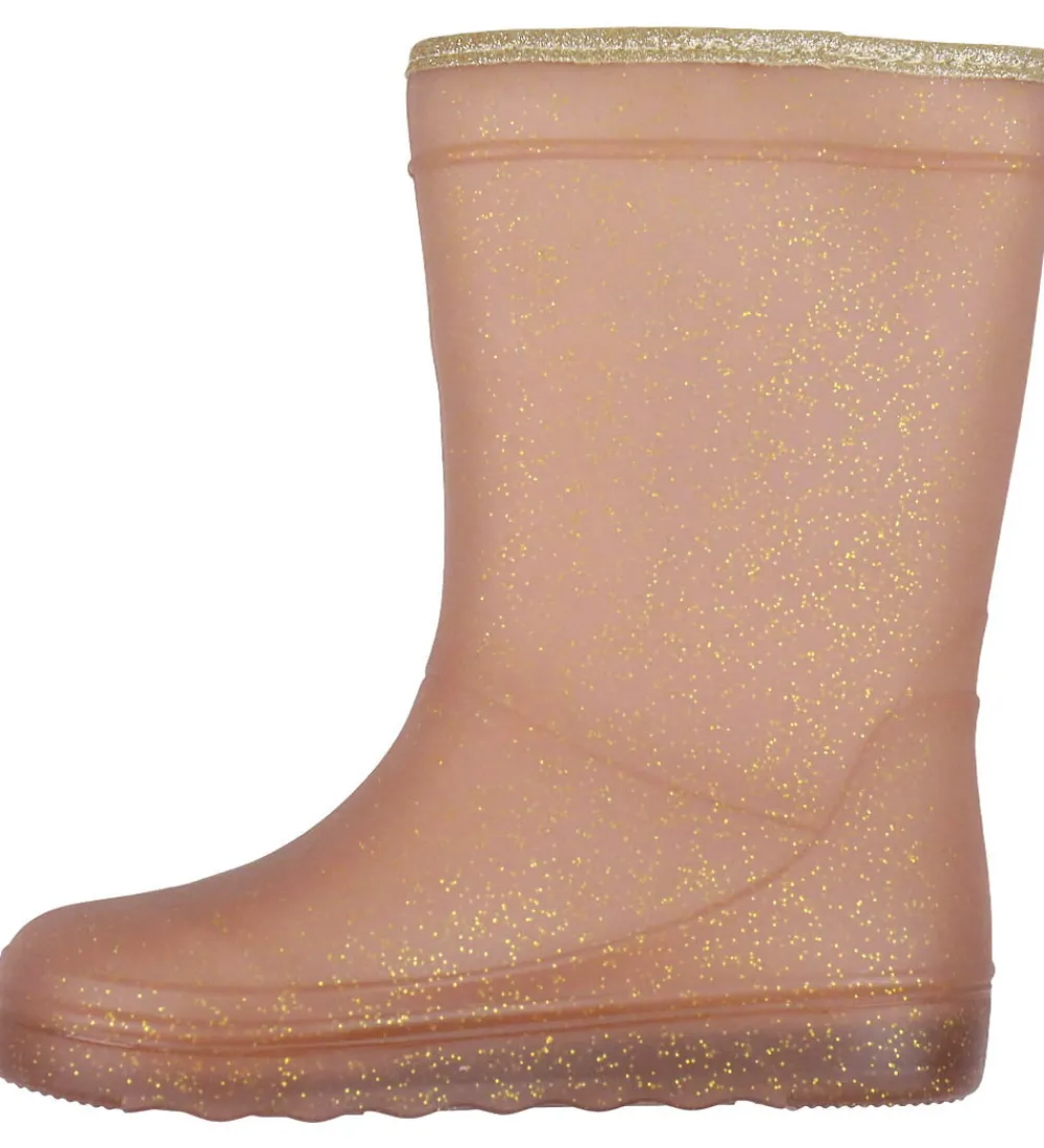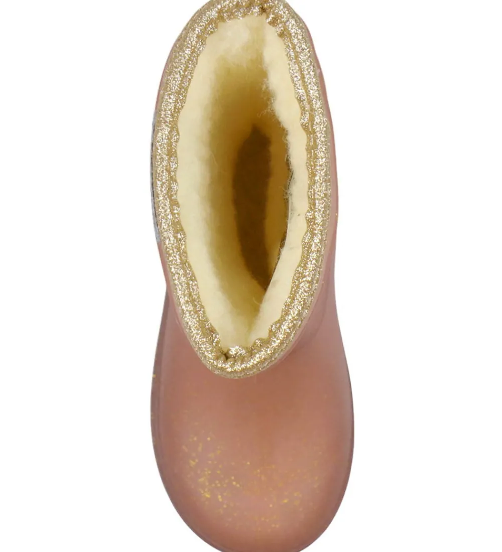 Smarte En Fant termostøvler i rosa med guld glimmer og med en kant i toppen i guld glimmer.