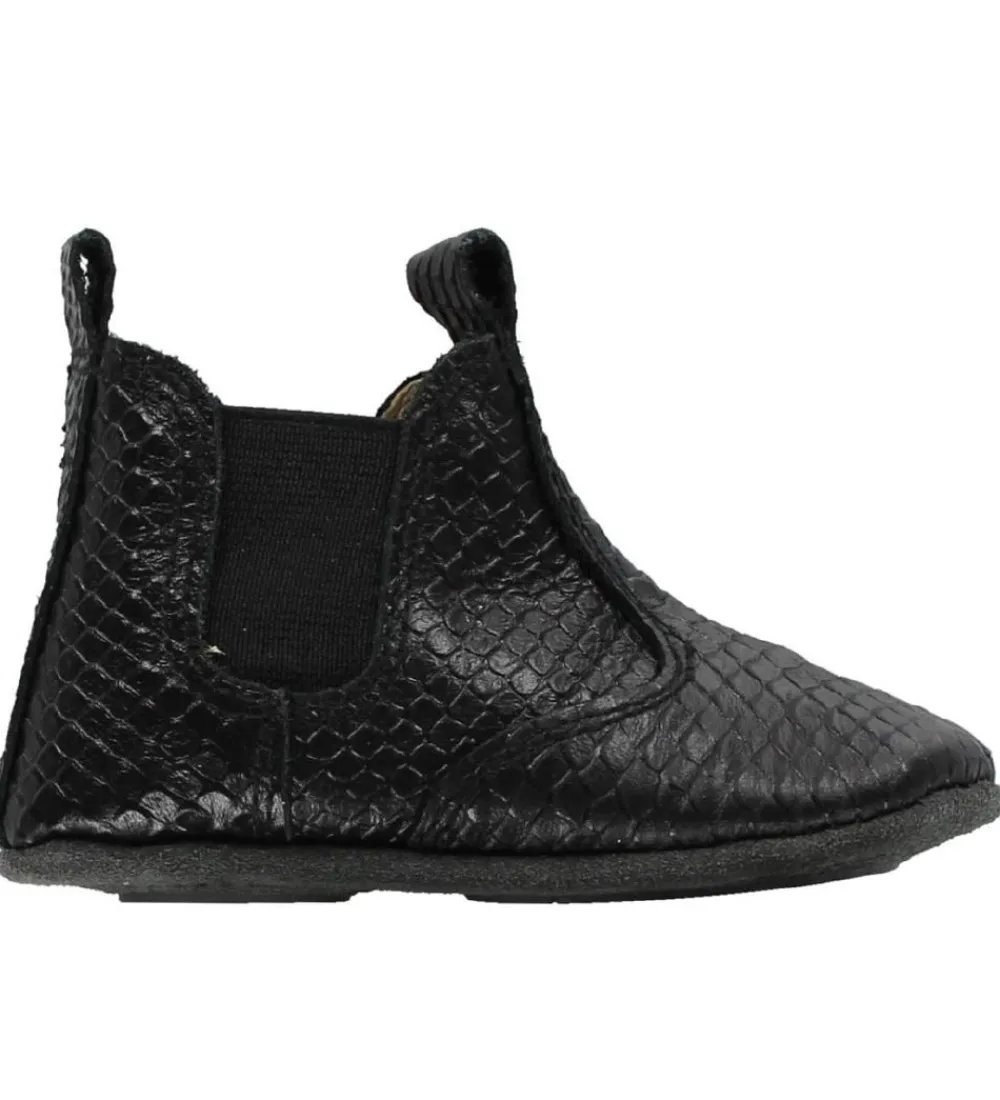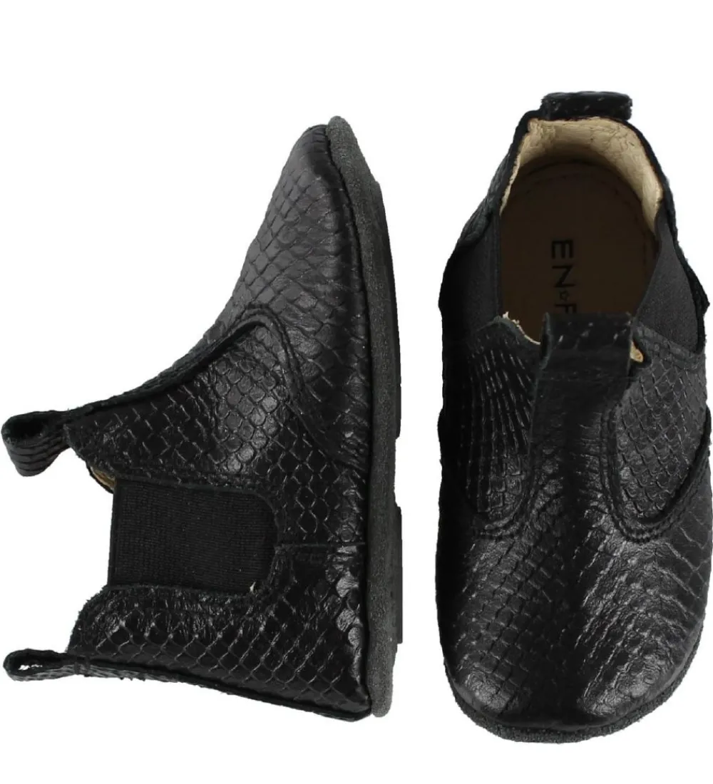 Smarte En Fant skindfutter i en klassisk sort farve i slangelook med elastikkanter i siderne ved anklen, så den er nem og hurtig at få på, men også sidder til og har en rigtig god pasform – helt uden at stramme naturligvis.