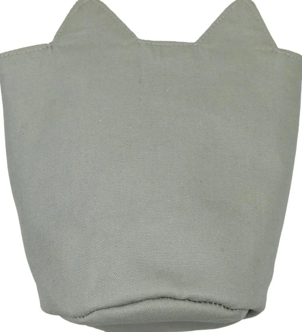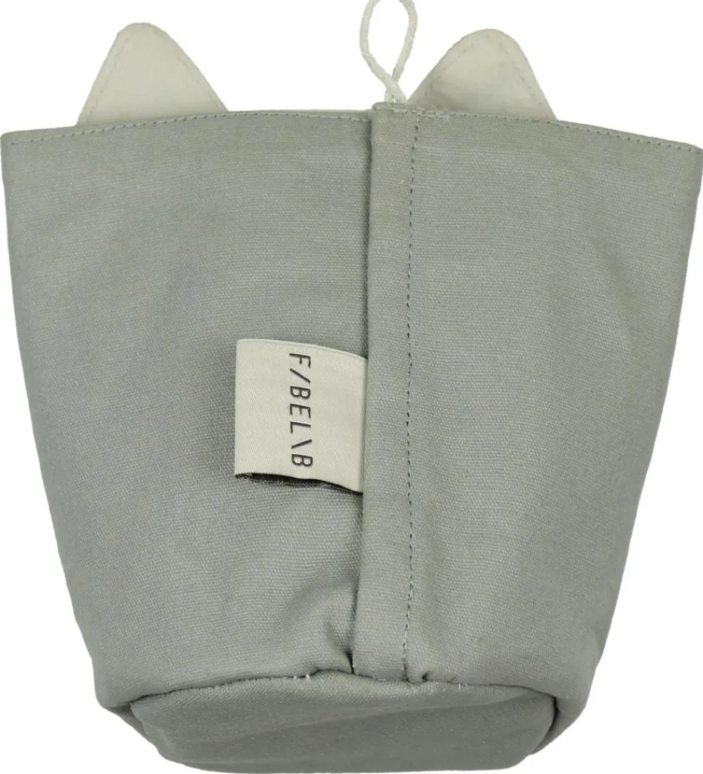 Sjov Fabelab opbevaringspose i tekstil i mørkegrå med et lysegråt for. I kanten er der to søde katteører.