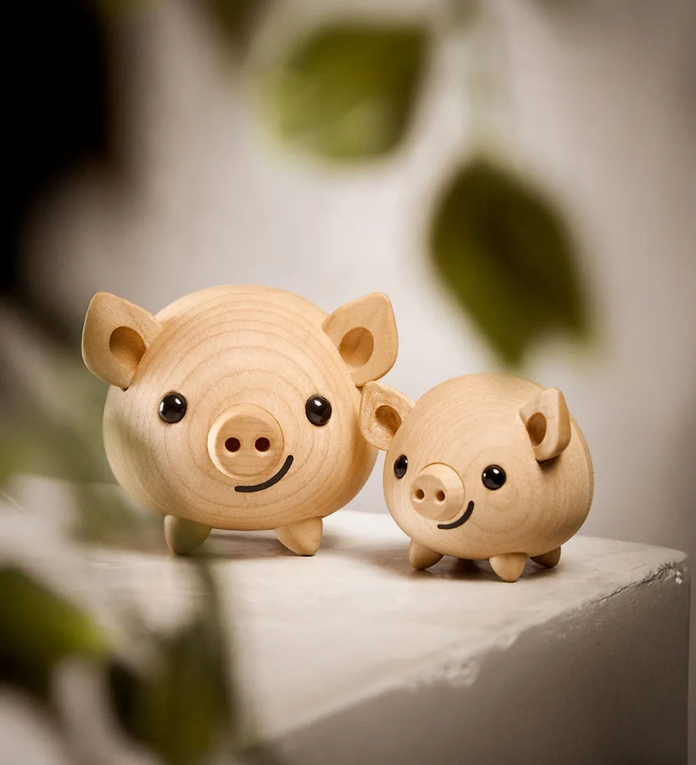 Skøn FableWood dekoration formet som den store gris Tulle i lyst træ. FableWood skaber et udtryk af varme og hygge med detaljerede udskæringer og en stilfuld finish, der passer perfekt ind i ethvert hjem.