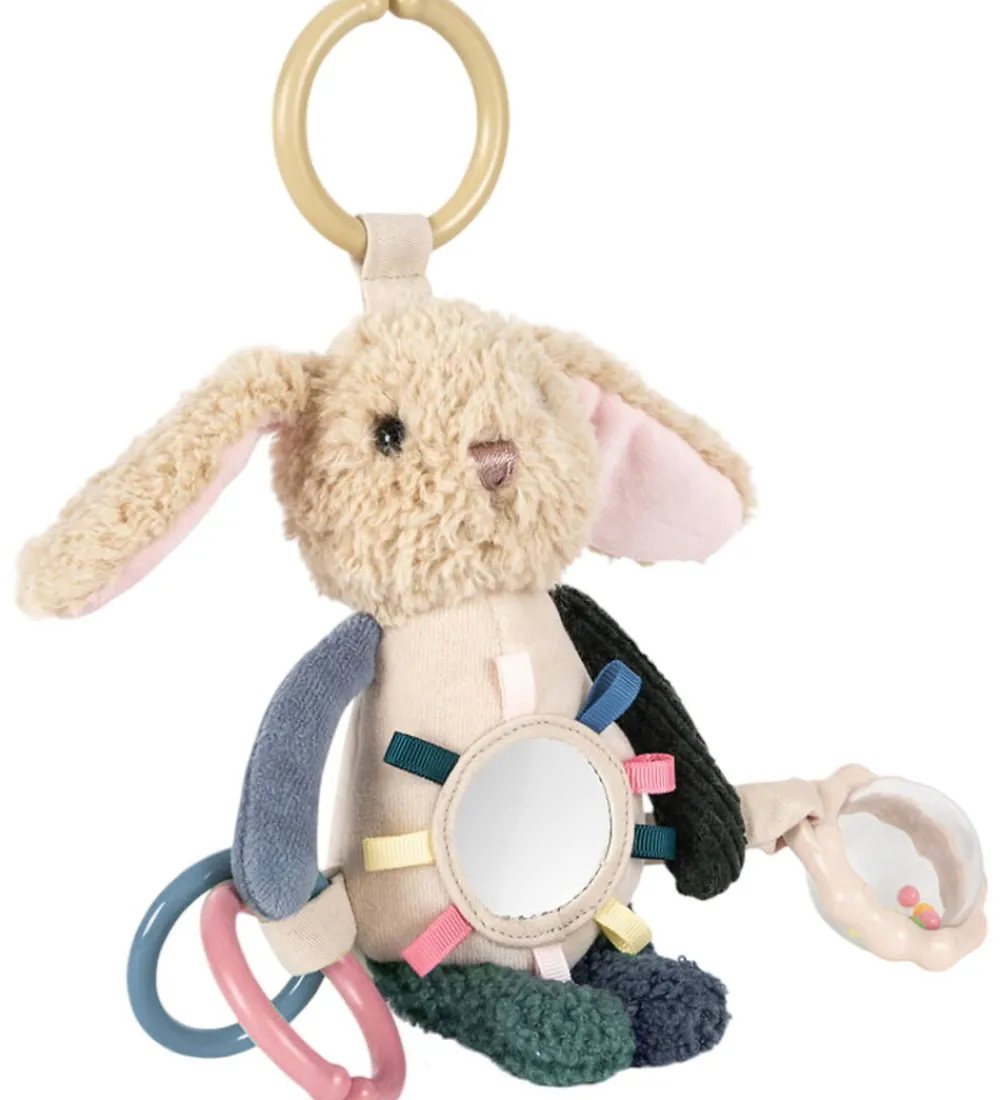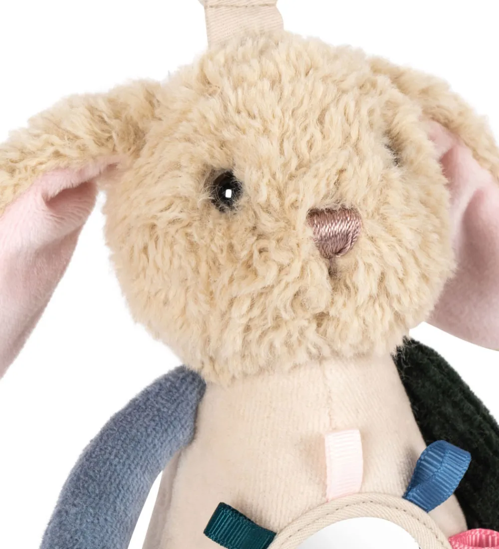 Ophænget har en plastikring foroven, som nemt hægtes fast i autostolen, barnevognen eller aktivitetsstativet. Bamsen har forskellige strukturer, knitrende effekter, raslelyde og et lille spejl på maven. Opnhænget stimulerer sanserne og skaber glæde hos de små.
