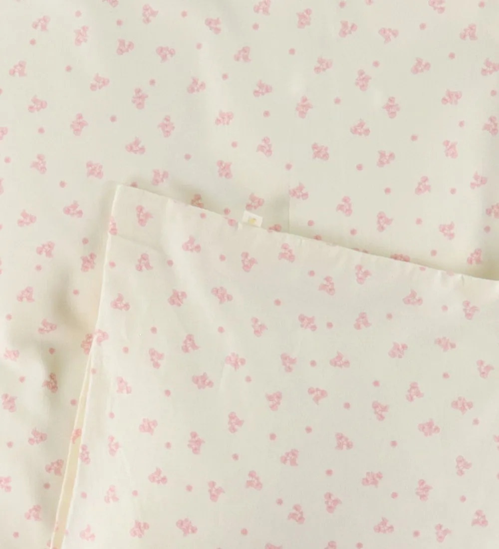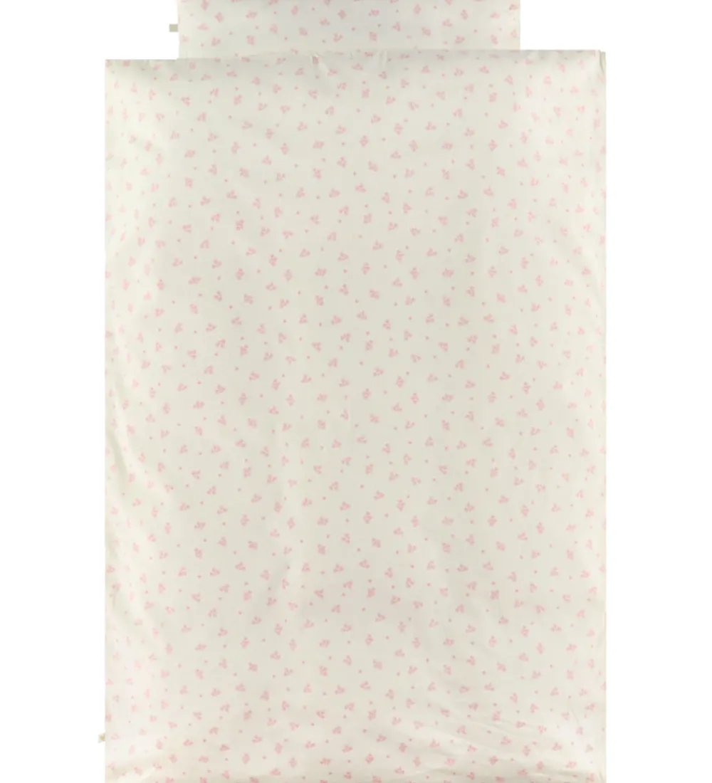 Blødt Fanga Fontana sengetøj i en råhvid nuance med små, fine blomsterprint i en diskret, rosa farve.
