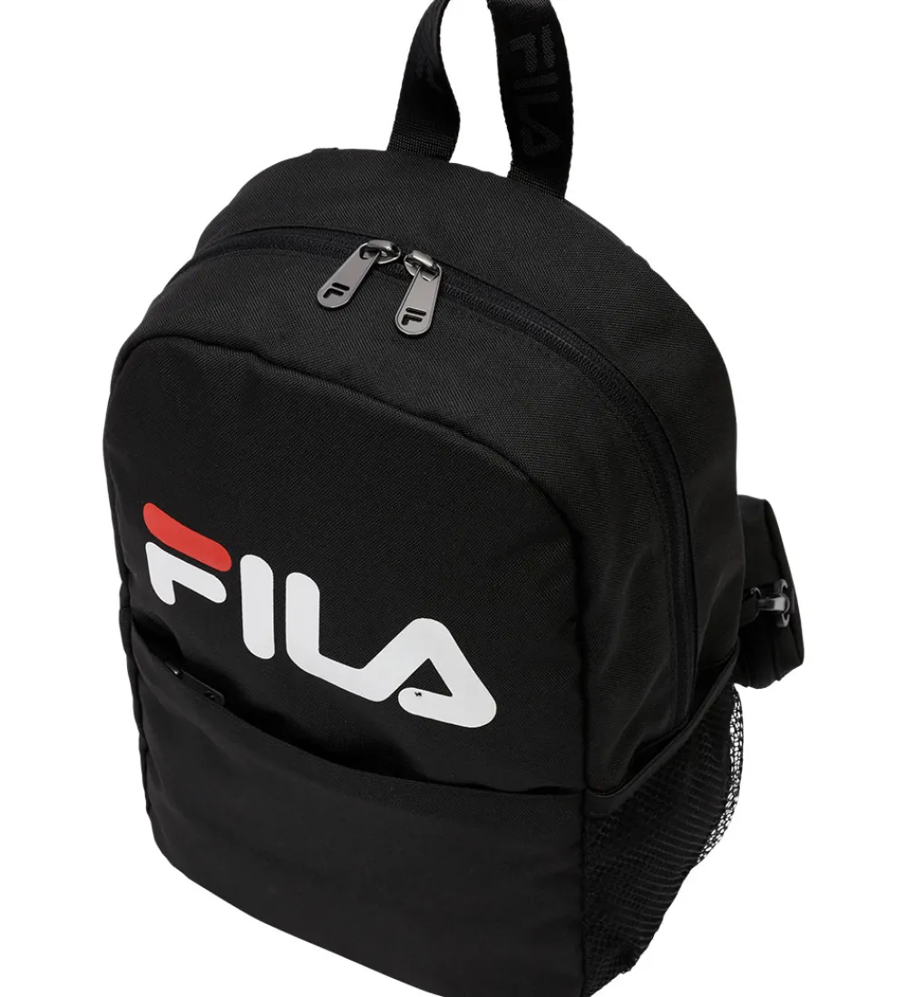 Lækker Fila rygsæk i sort med et stort Fila-logo foran i hvid og rød.