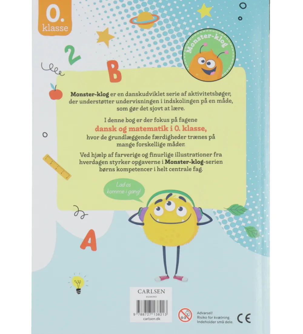 Forlaget Carlsen opgavebogen er fuld af opgaver med fokus på fagene dansk og matematik i 0. klasse, hvor de grundlæggende færdigheder trænes på mange forskellige måder. Monster-klog-serien understøtter undervisningen i indskolingen på en måde, som gør det sjovt at lære. Opgavebogen er hæftet.