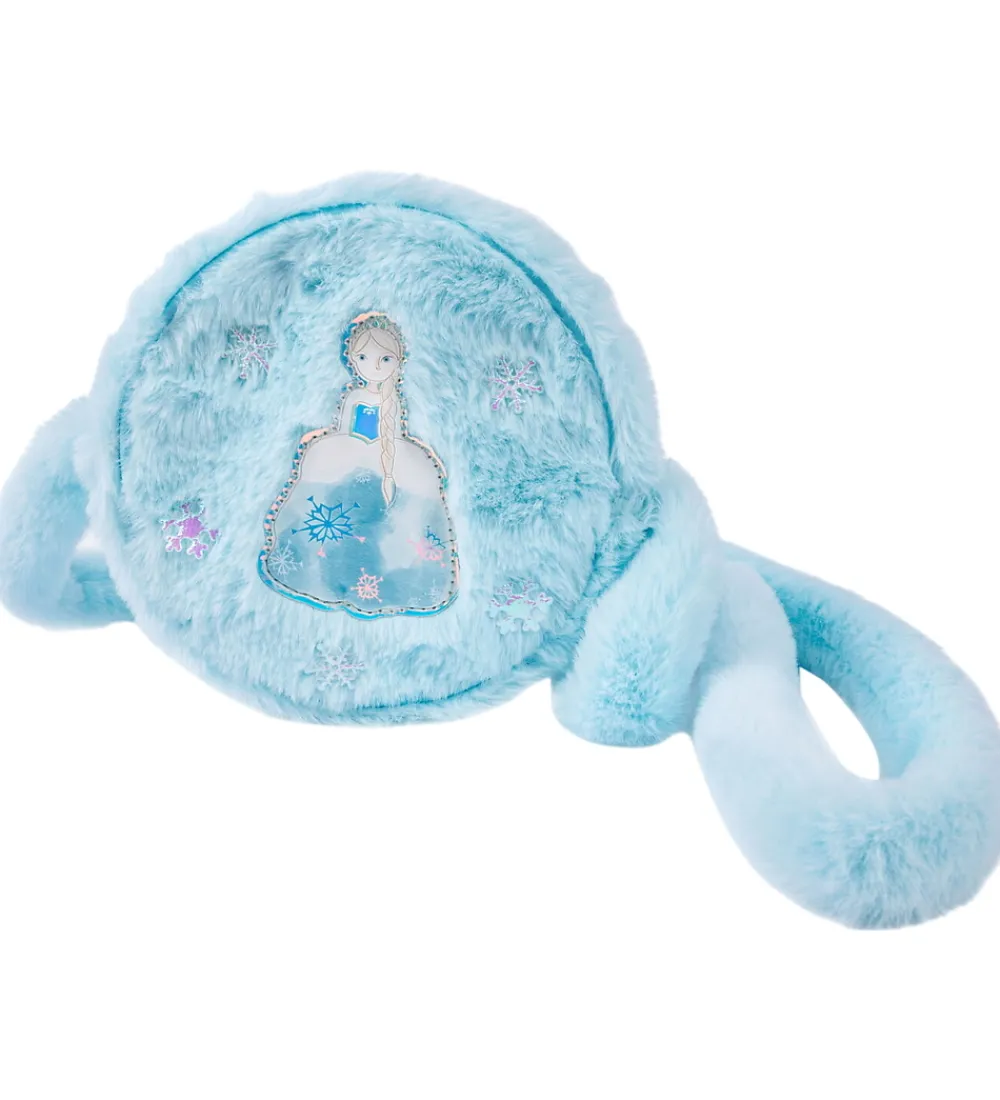 Charmerende Great Pretenders skuldertaske af imiteret pels i lyseblå med et detaljeret prinsesseprint på fronten. Skuldertasken har et blødt og plysset udseende, perfekt til små eventyr og sjove udflugter.