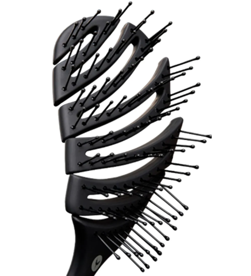 HH Simonsen hårbørsten har fleksible Smartflex børstepigge, som mindsker risikoen for spaltede spidser og knækkede hår. Hårbørsten er i en fleksibel kvalitet, som yder mindre modstand når børsten trækkes igennem håret, og den har et ‘luftigt’ design, som er perfekt til at føntørre.