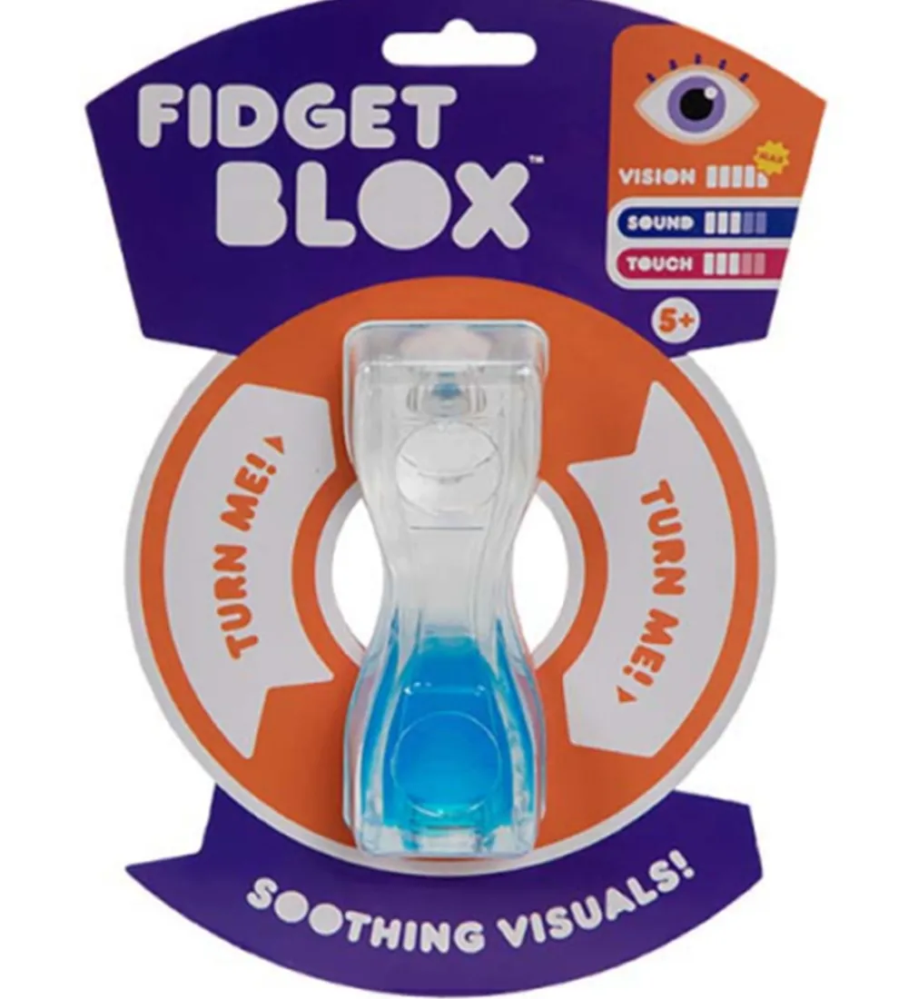 Sjovt Jelly Blox legetøj i blå formet som et timeglas. Jelly blox legetøjet er blødt og beroligende at røre ved, og fungerer som et timeglas, når man vender det om. Jelly Blox giver styrker den taktiske sans samt synssansen.