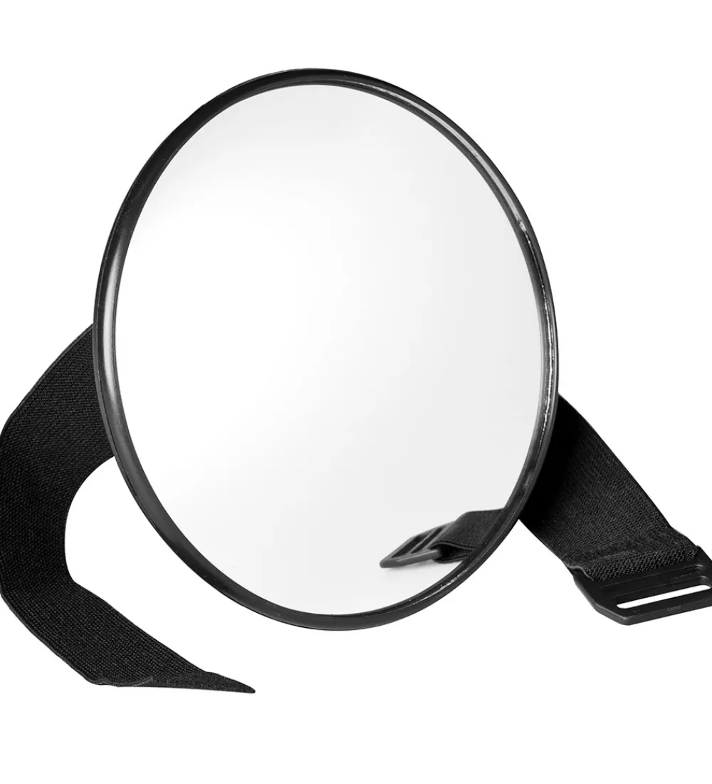 Jippies babyspejlet er rundt, og det buer udad, så giver et godt udsyn. Spejlet sættes fast en elastisk rem med velcro omkring nakkestøtten på bagsædet, så kan du let holde øje med dit barn, når det sidder i en bagudvendt autostol.