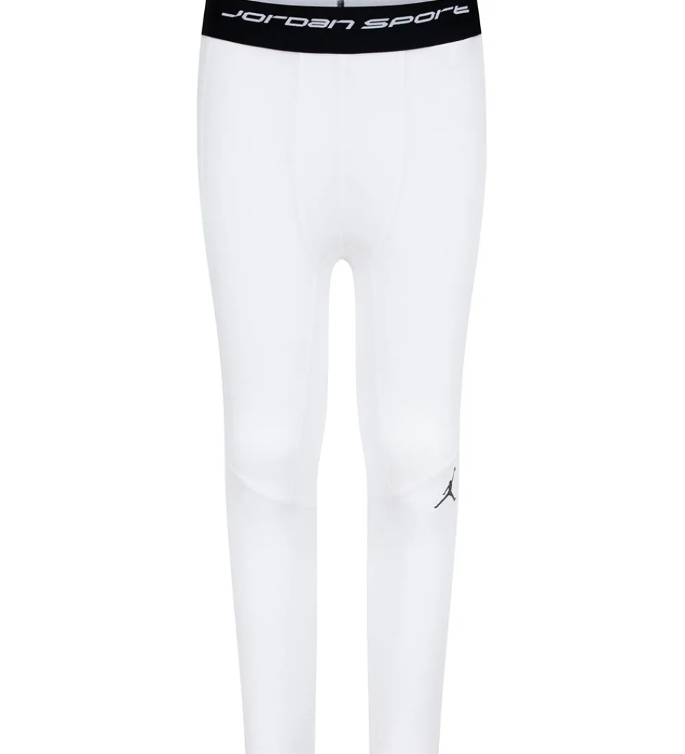 Friske Jordan leggings i en klar hvid nuance med et klassisk logoprint på siden. Disse leggings har en tætsiddende pasform, der giver en let og komfortabel fornemmelse under sport og aktiviteter.