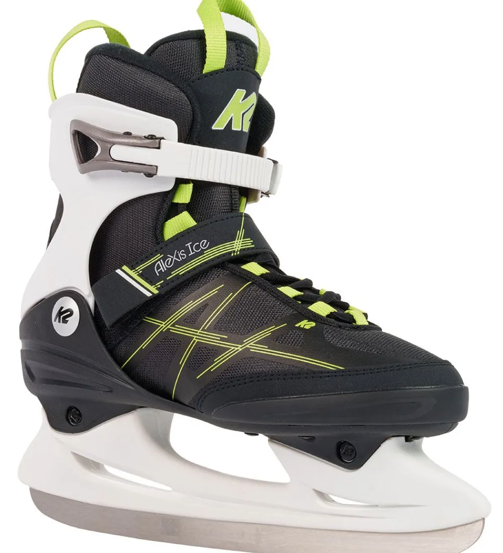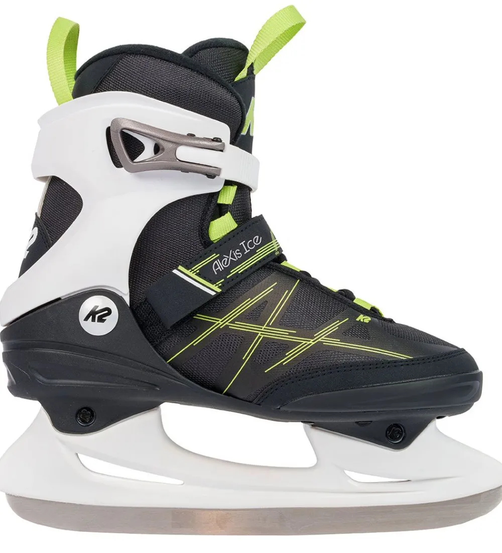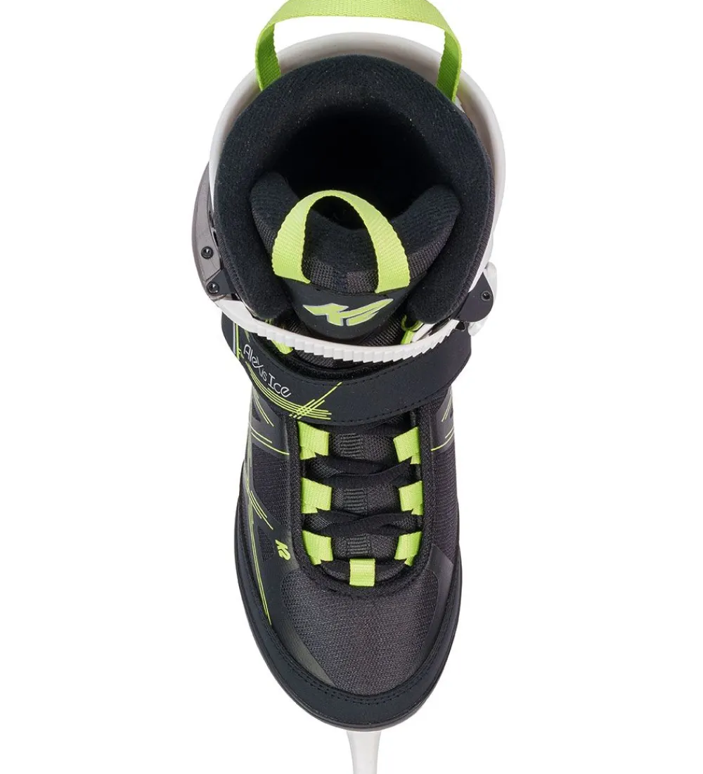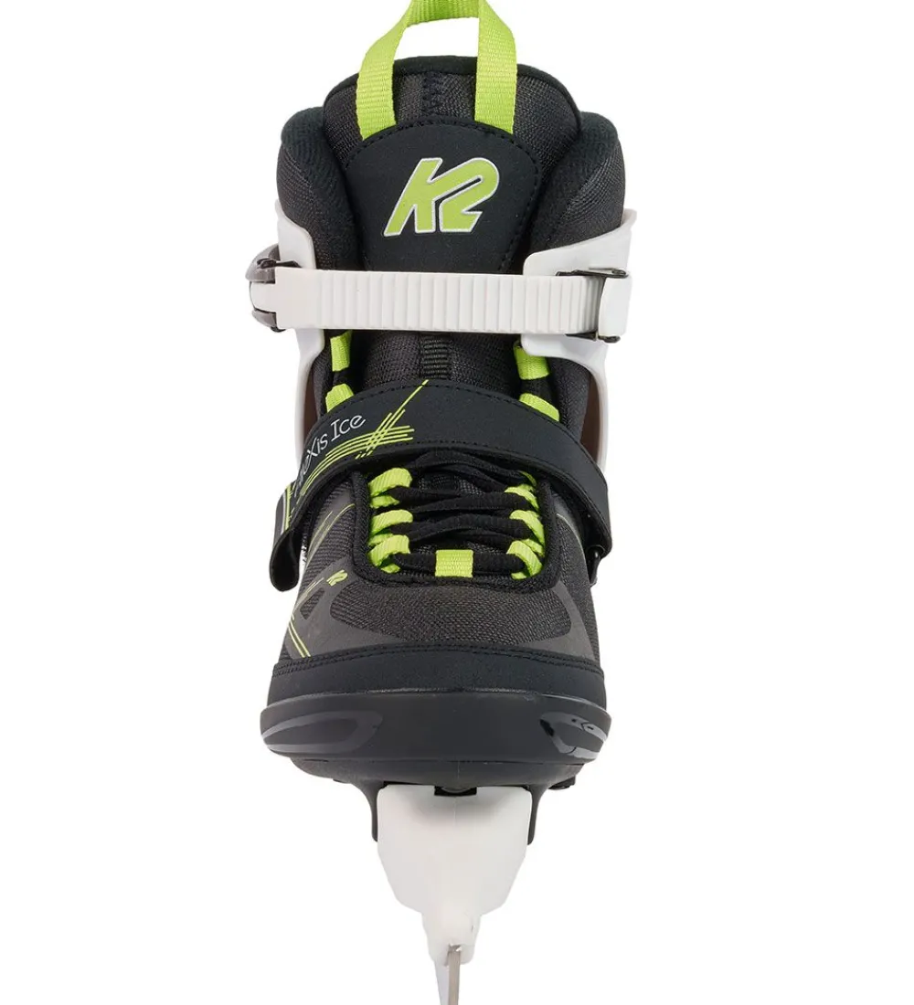 Skønne K2 skøjter i sort og hvid, med detaljer i limegrøn og sølv.