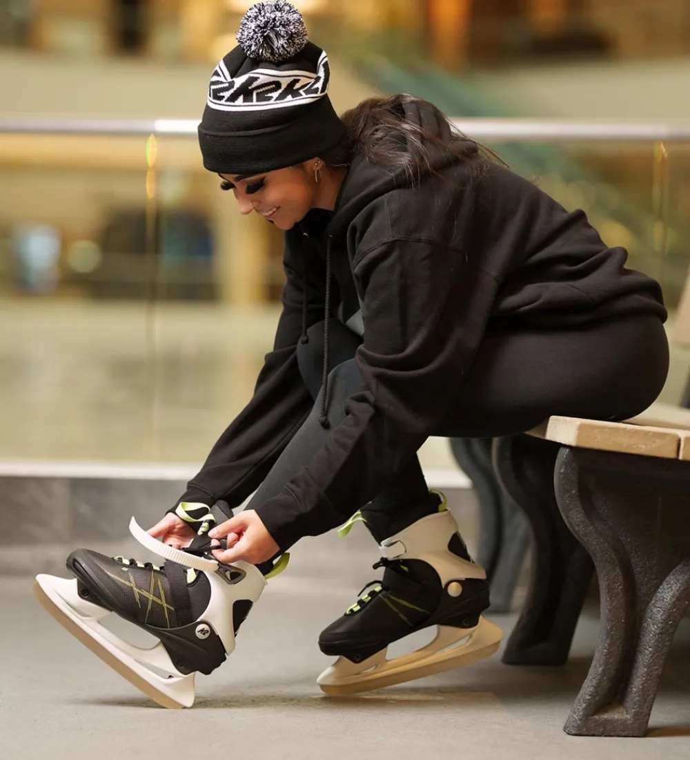 Skøjterne lukkes med både en elastiksnor, en velcrorem og en plastrem, så de er lette at få af og på. På hælen og pløsen er der praktiske stropper.