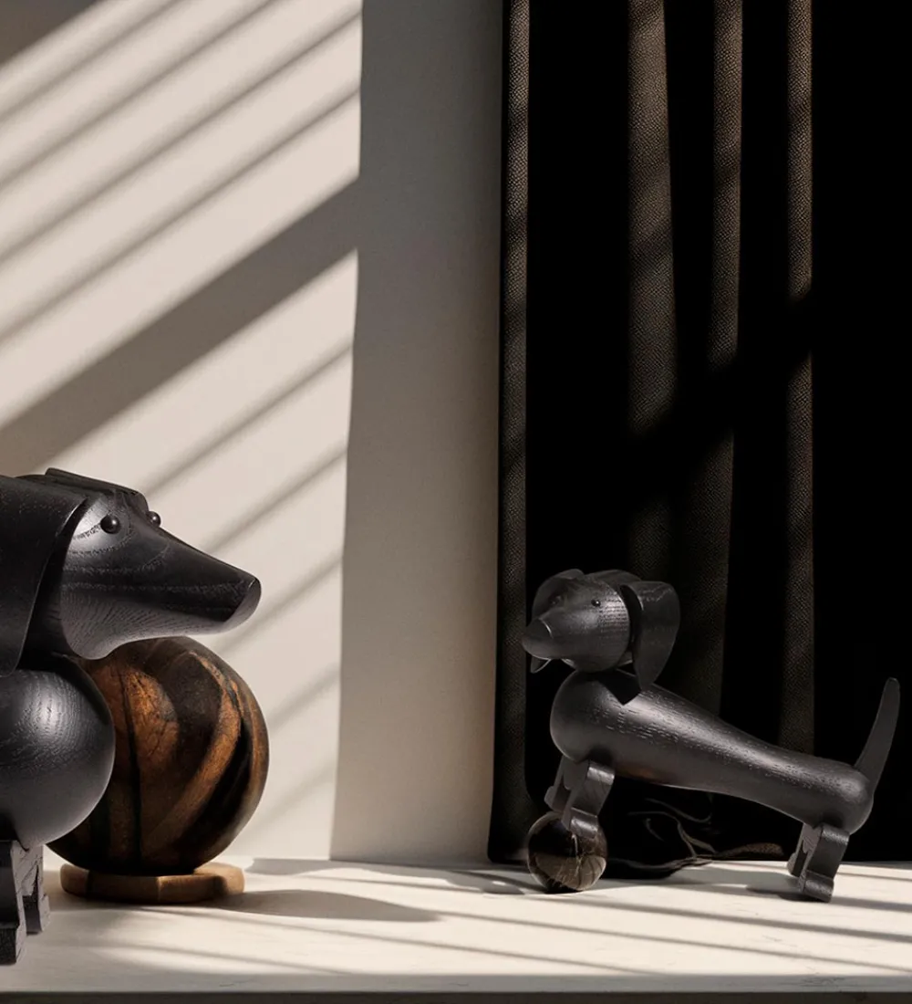 Skøn Kay Bojesen træfigur, der forestiller en gravhund i sort, mørkbejdset eg.