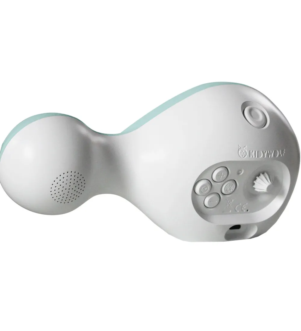 Kidywolf vækkeuret har en form i en uendelighedsfacon, der på smart vis former en stor, analog urskive og en mindre digital urskive.