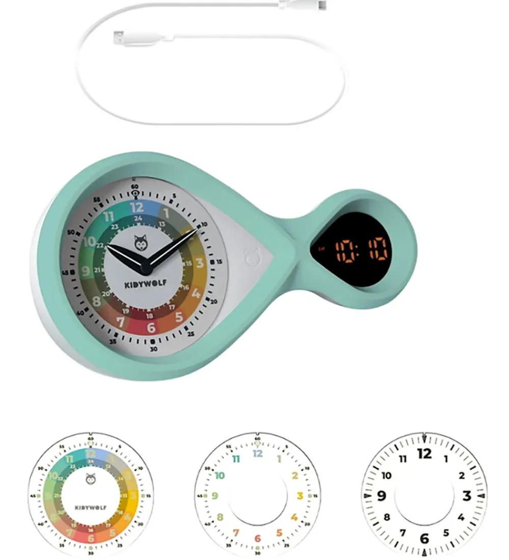 Den analoge urskive kan få skiftet sit design, så den følger barnets alder, og der medfølger en urskive til henholdsvis 6+, 8+ og 10+ år.