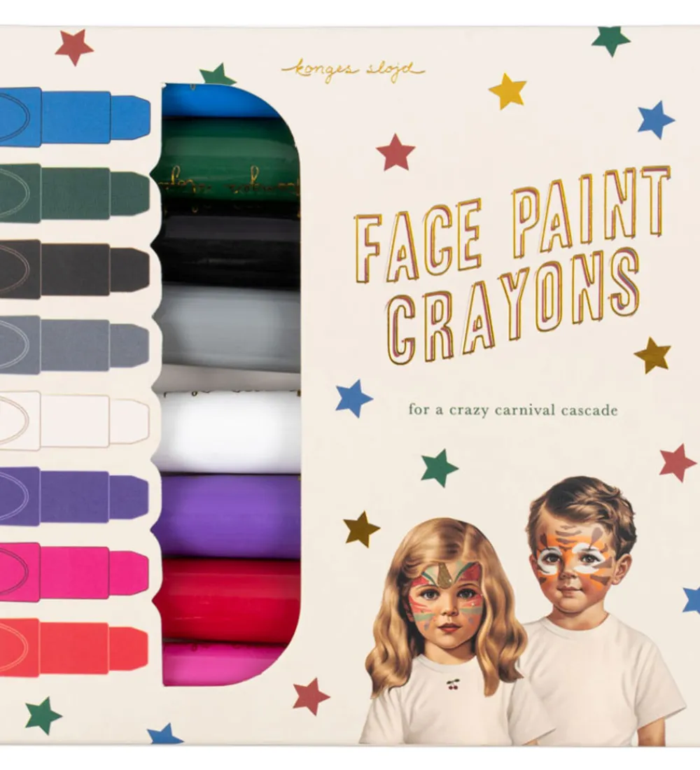 Farverig Konges Sløjd ansigtmaling med 8 ansigtmalingkridt i forskellige nuancer. Sættet er perfekt til kreative stunder og giver mulighed for sjove design til festlige lejligheder og leg.
