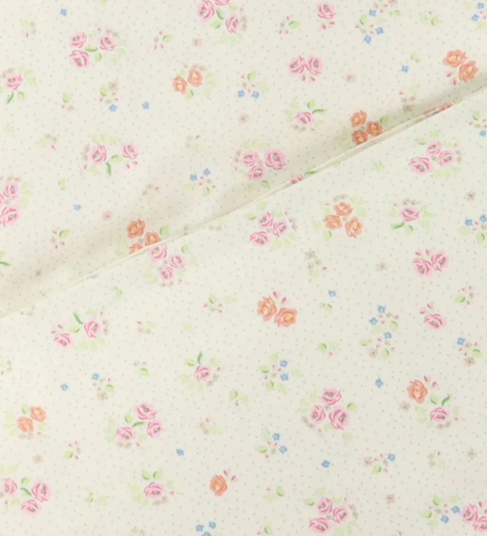 Sødt Konges Sløjd sengetøj i råhvid med små, blå prikker og et fint blomsterprint i bløde nuancer. Konges Sløjd sengetøjet består af et hovedpudebetræk med foldelukning, og et dynebetræk som lukkes med lynlås i enden. Sengetøjet er fremstillet i blødt, økologisk bomuld, og kommer i en smart opbevaringspose.