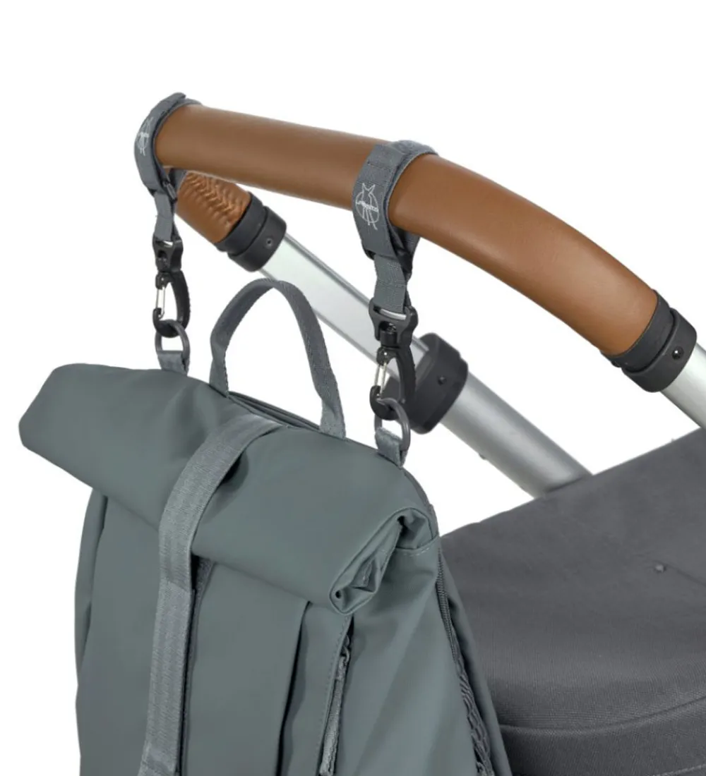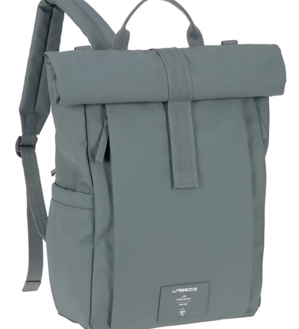 Lässig pusletasken skiller sig ud ved at være designet som en rygsæk, som har polstrede, justerbare skulderstropper samt en blødt polstret ryg af mesh for åndbarhed. På tværs af ryggen går en bred rem til udvendig opbevaring. Der er også en bærehank i toppen og desuden to ringe, så pusletasken kan monteres på en barne- eller klapvogn i kombination med de medfølgende karabinhager med velcrostropper.