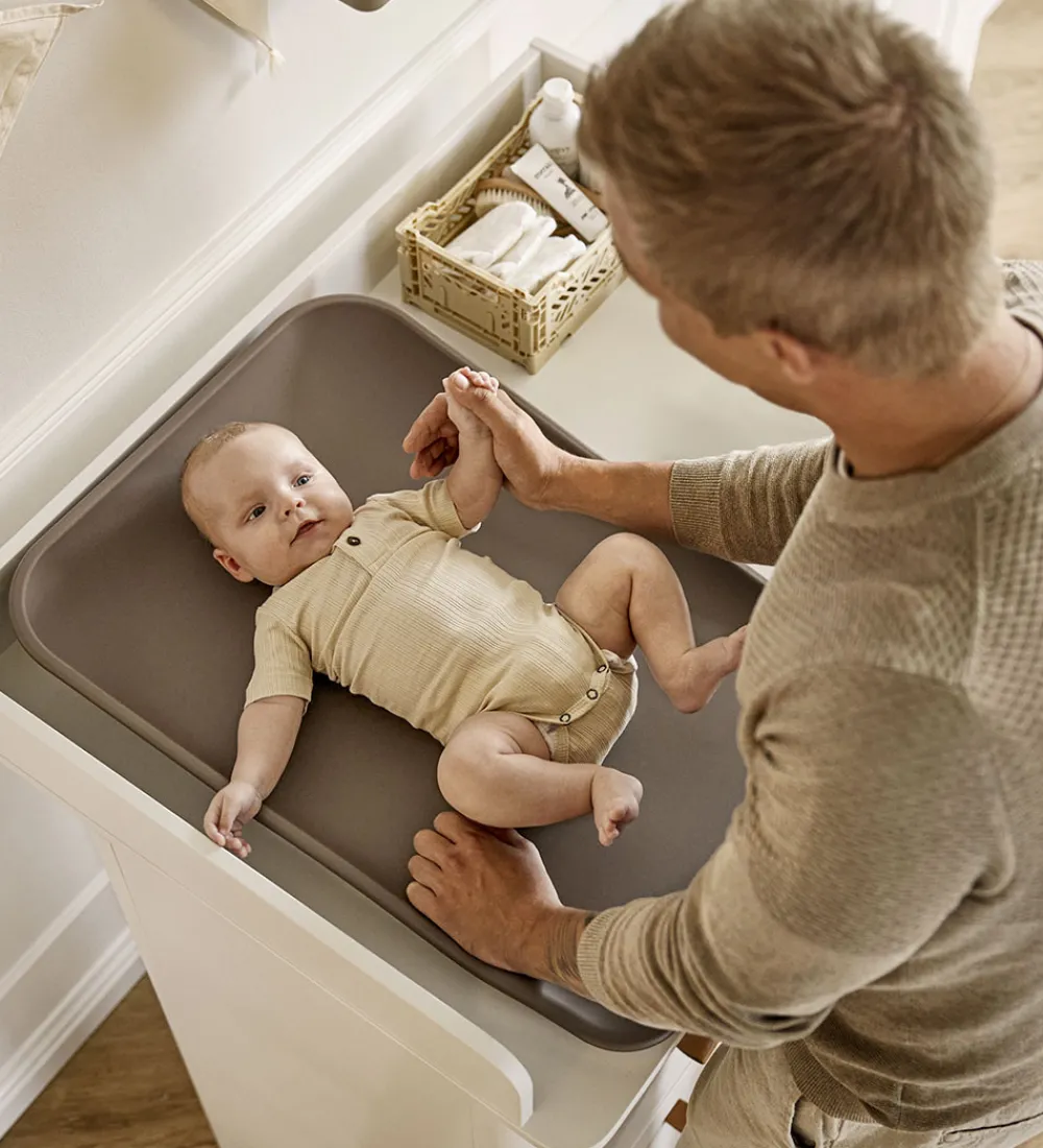 Leander Matty puslepuden er lavet af formstøbt skum, som har en fast form, men som samtidig at blødt og behageligt at ligge på. Puslepuden har en vandafvisende overflade, som nemt kan tørres af med sprit og holdes ren.