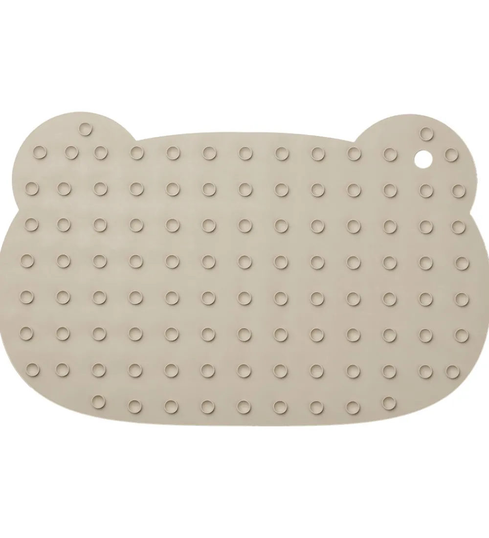 Smart Liewood bademåtte formet som et bamsehoved i en grålig beige nuance.