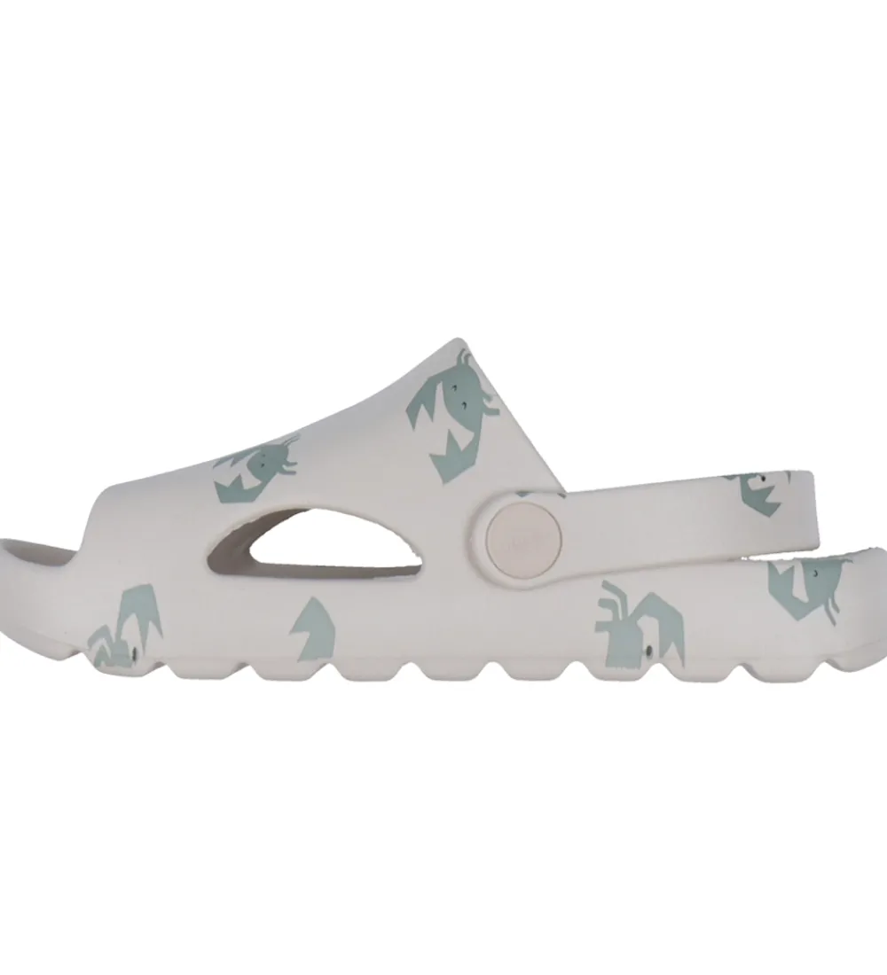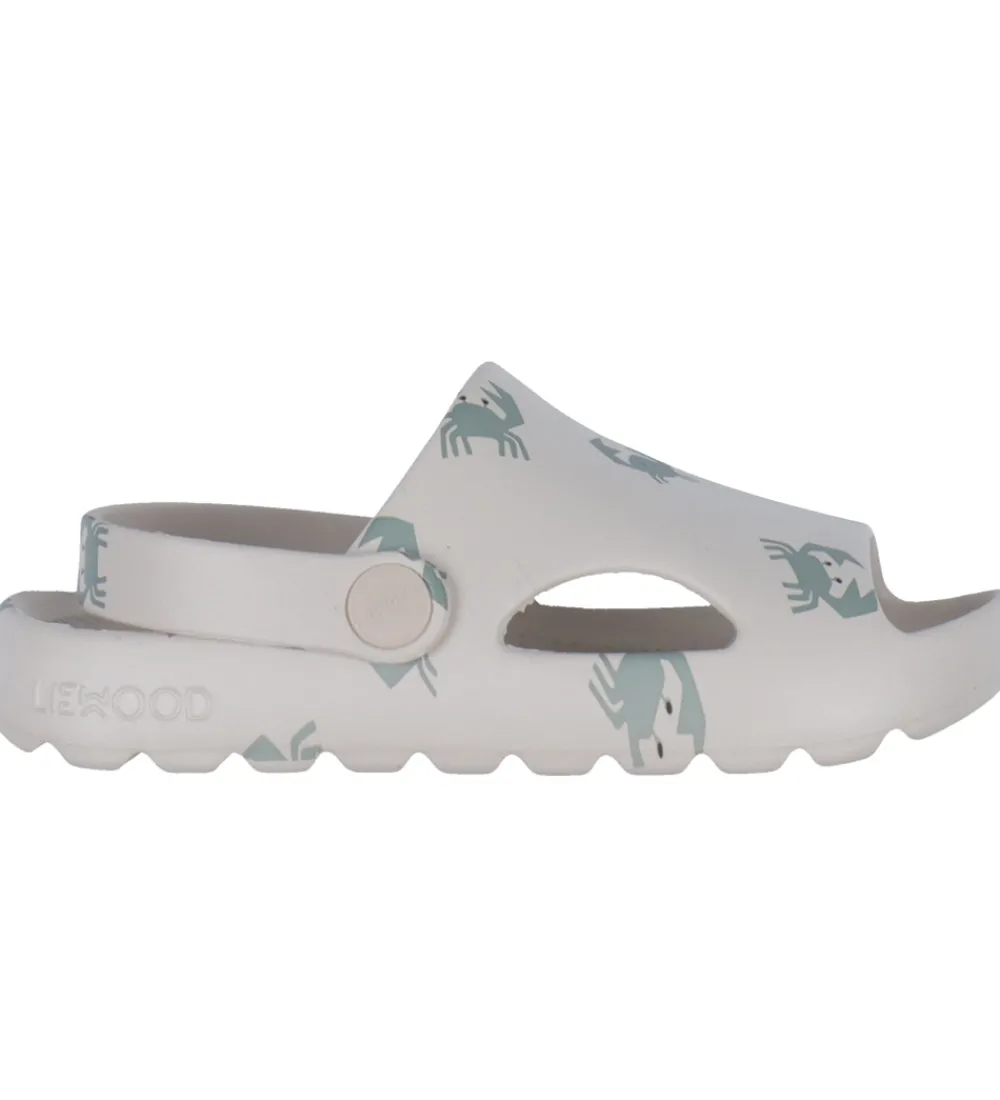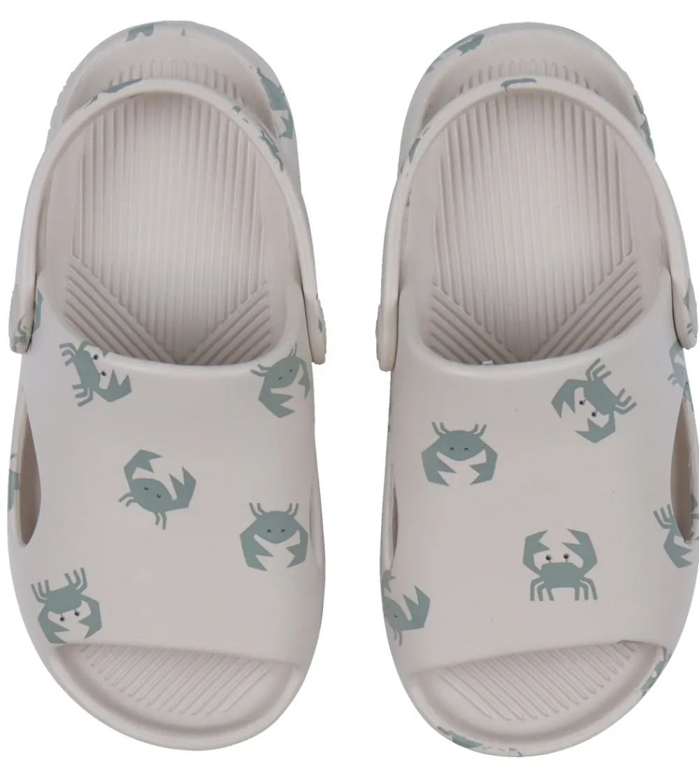 Fine Liewood badesandaler i lys beige med print af grønne krabber.
